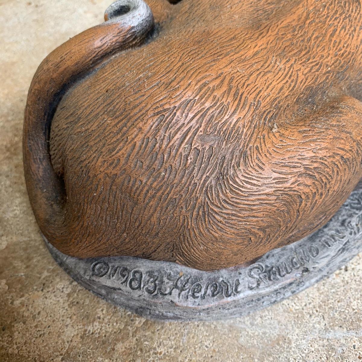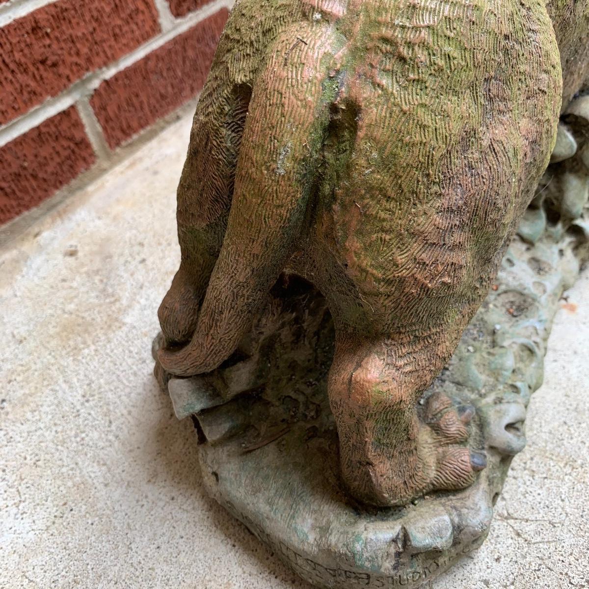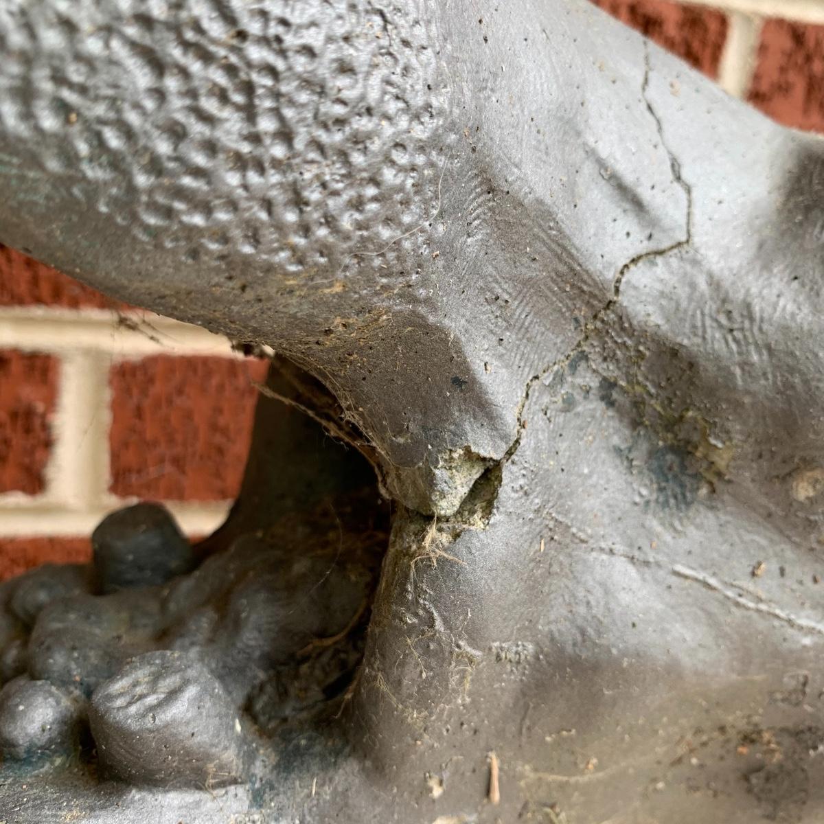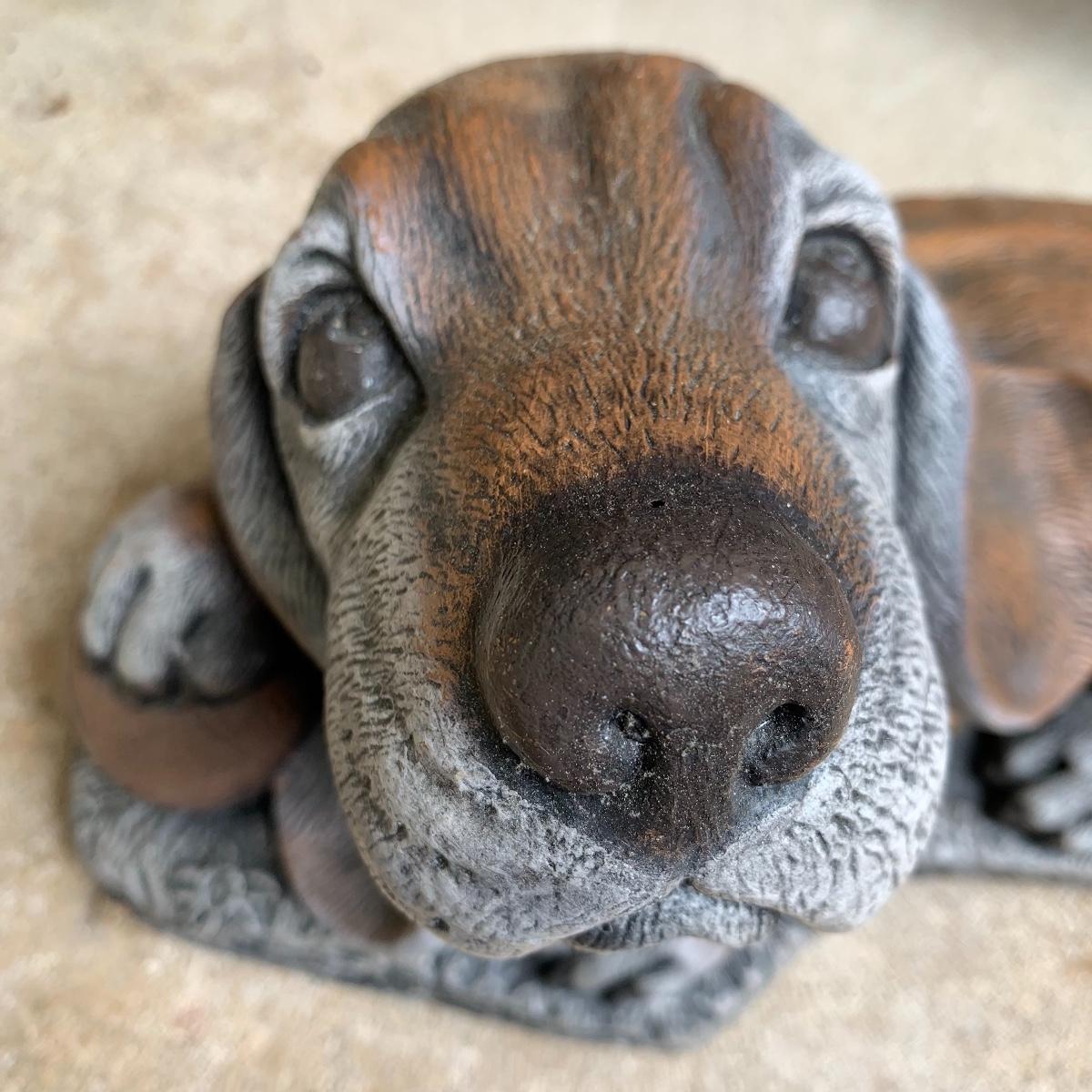 Bid on this lot to have these adorable companions decorate your yard! There are two little turtle statues that are pretty lightweight and in excellent condition. The two dog statues are quite heavy. The one with sweet puppy dog eyes staring up at you is in excellent condition and the dachshund shows a little wear from being outside. The hippo statue is very heavy and does show some wear from being outside. It appears that the snout broke off in the past and was repaired. The hippo is the largest statue. It measures 24” long and stands 13” tall. Local pickup only. Please be aware that these items are quite heavy and will need to be moved by the winning bidder from the back of the house from a home with stairs out front.