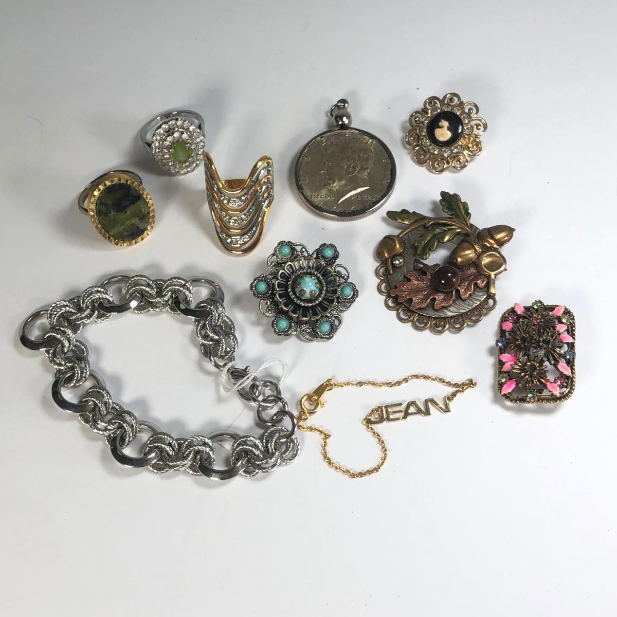 LOT 179J: 1964 Kennedy Half Dollar Pendant, Rings, Brooches & More