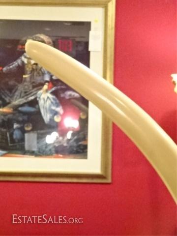 LOT 17D: PAIR MONUMENTAL CARVED WOOD TUSKS, ENAMELED FINISH