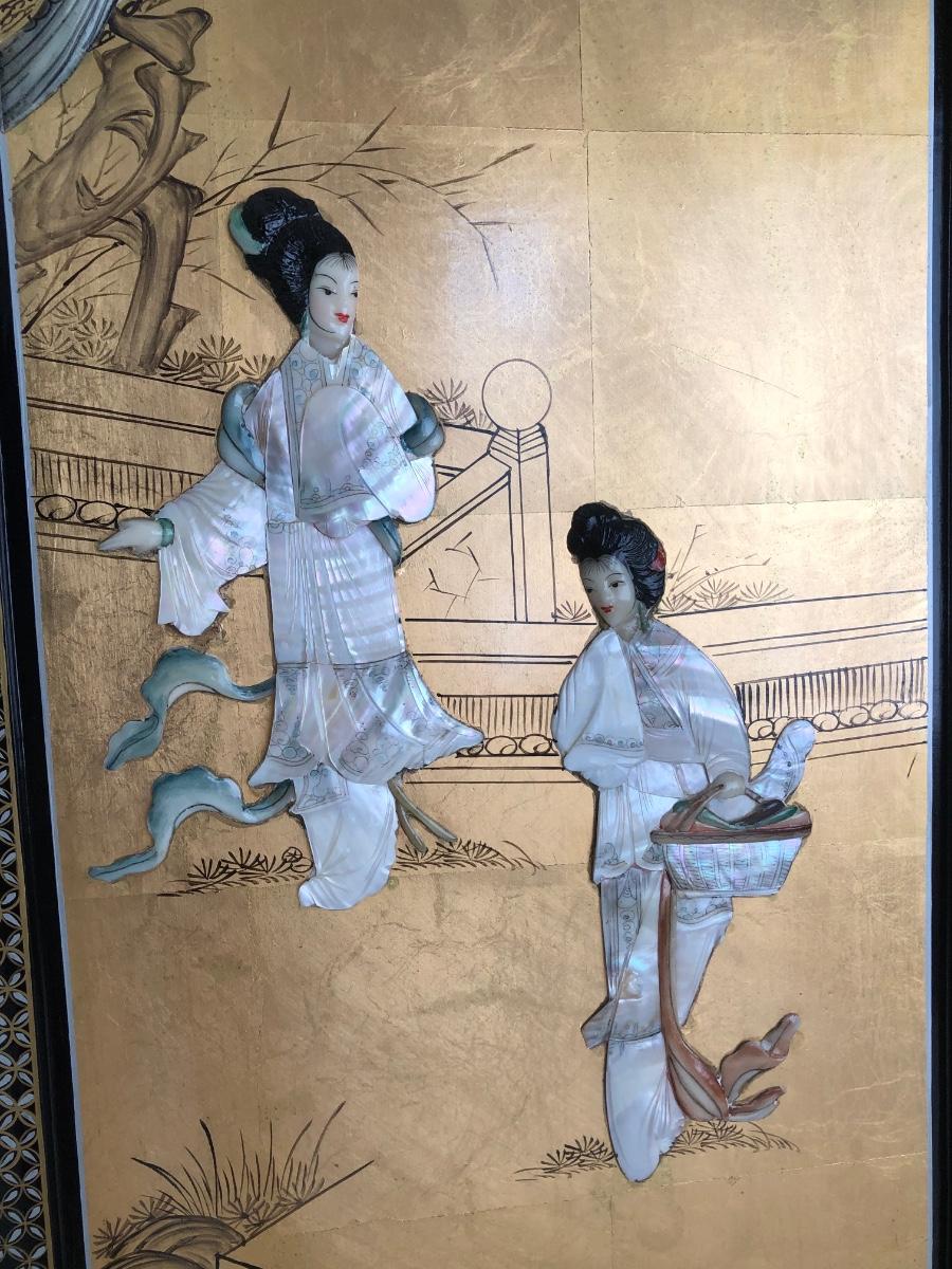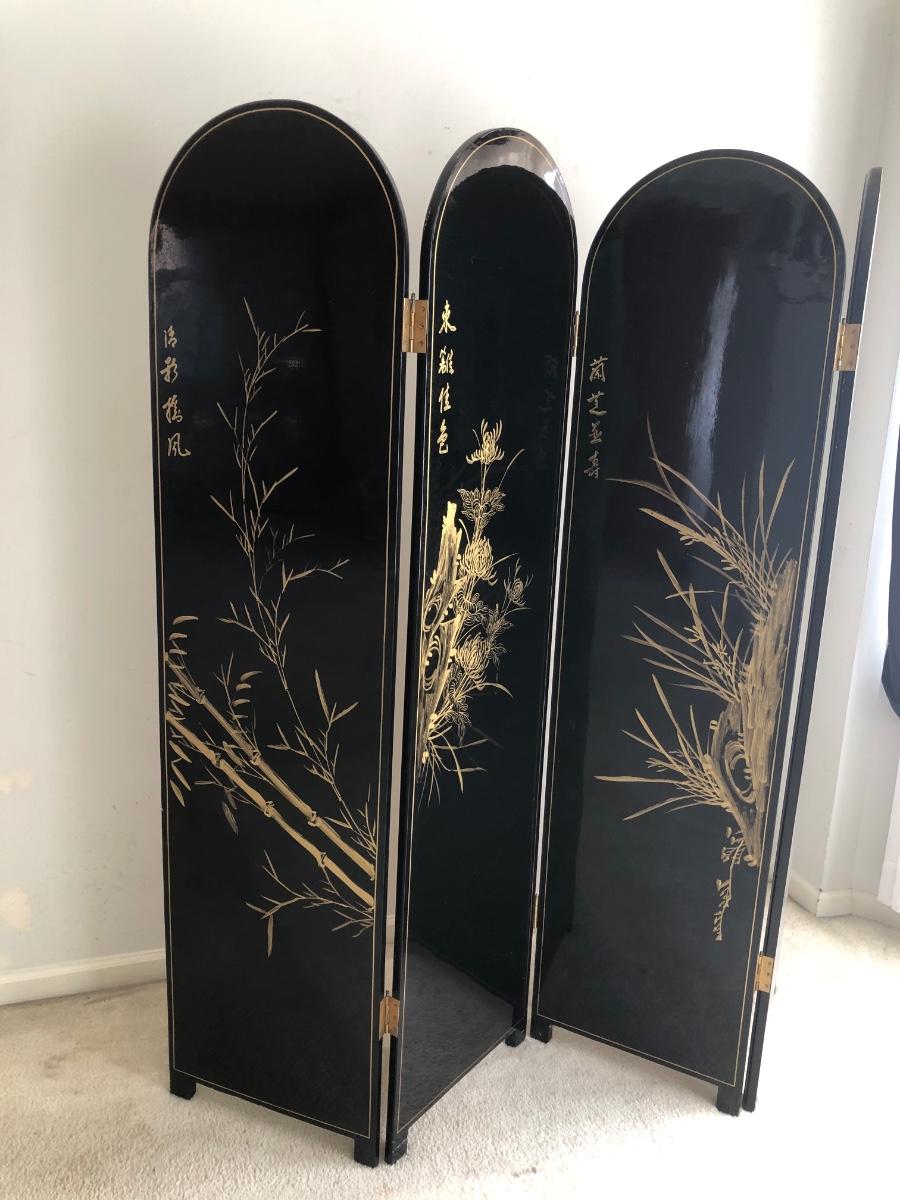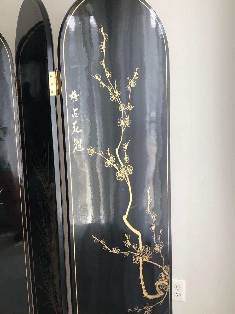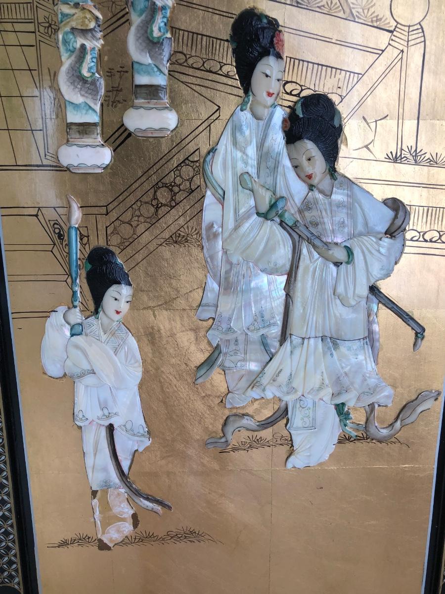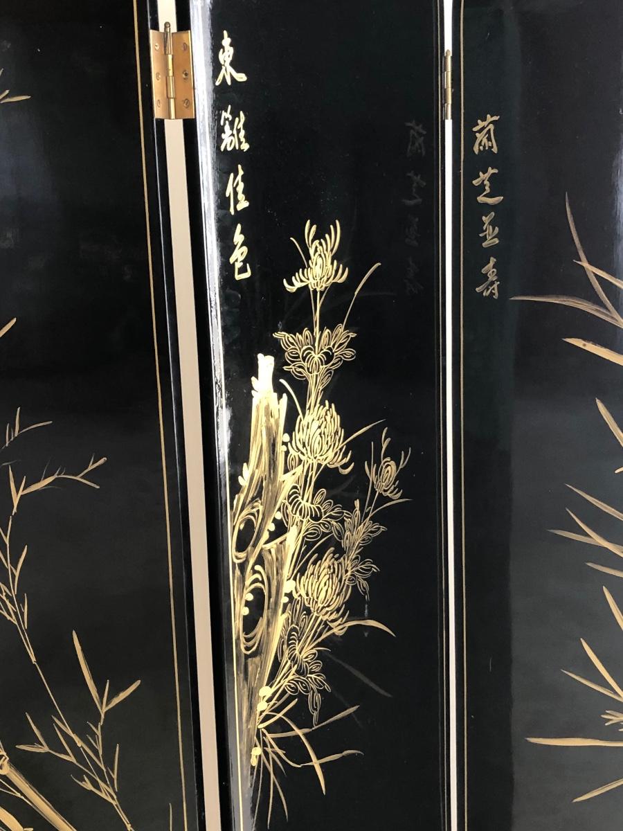 LOT 17G: Gorgeous Mid-Century Asian Folding Screen / Panel Divider w/ Iridescent Carved Accents