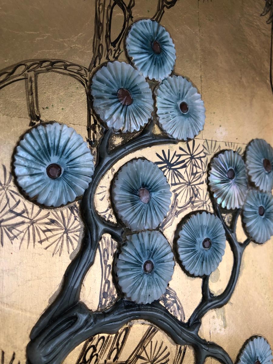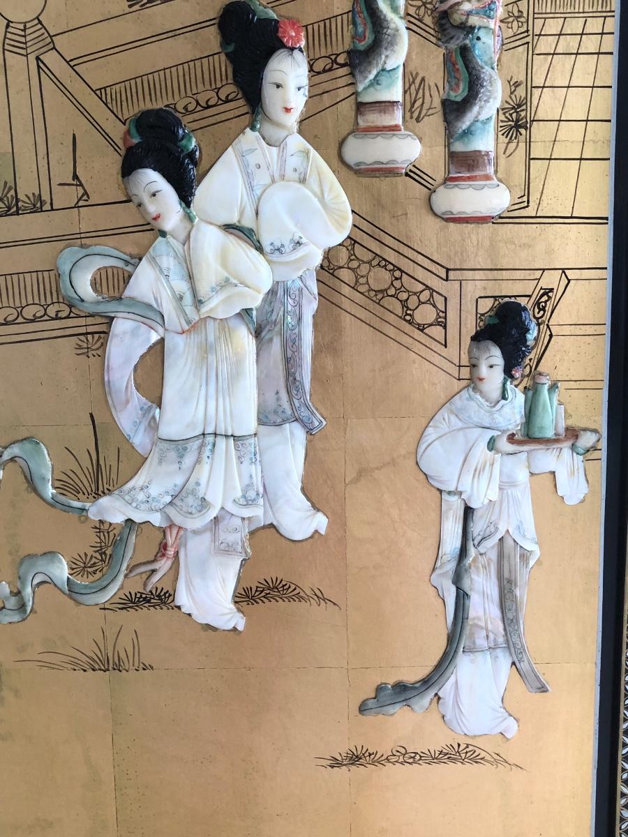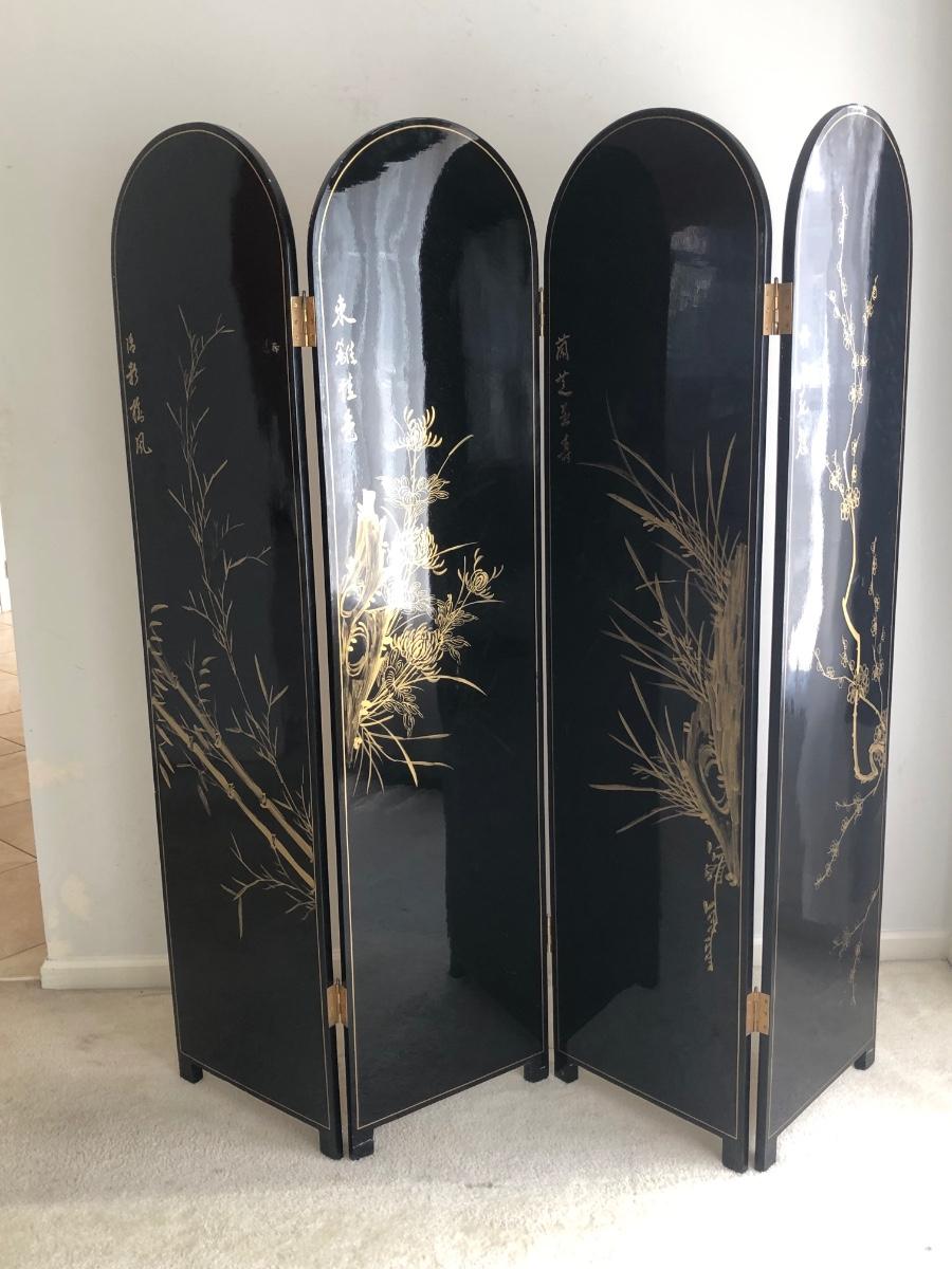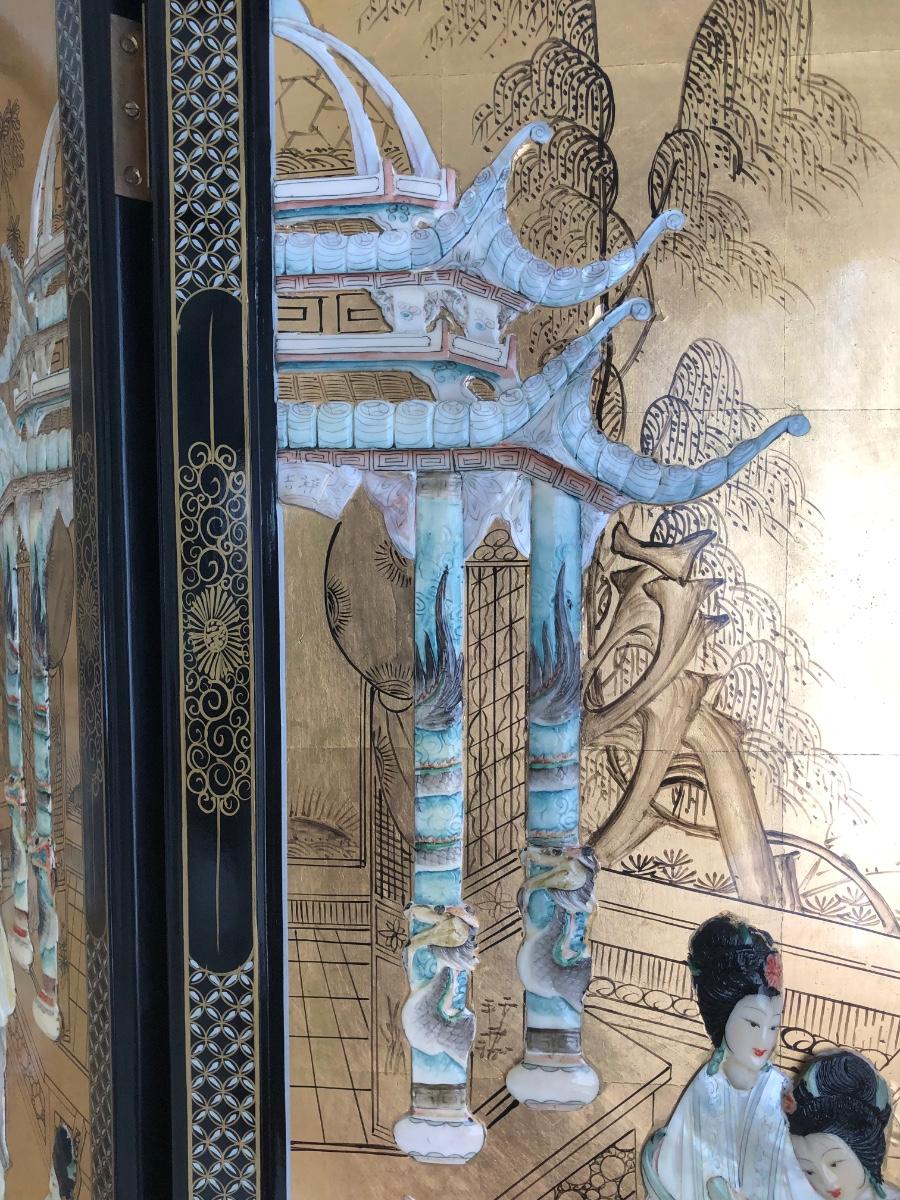 LOT 17G: Gorgeous Mid-Century Asian Folding Screen / Panel Divider w/ Iridescent Carved Accents