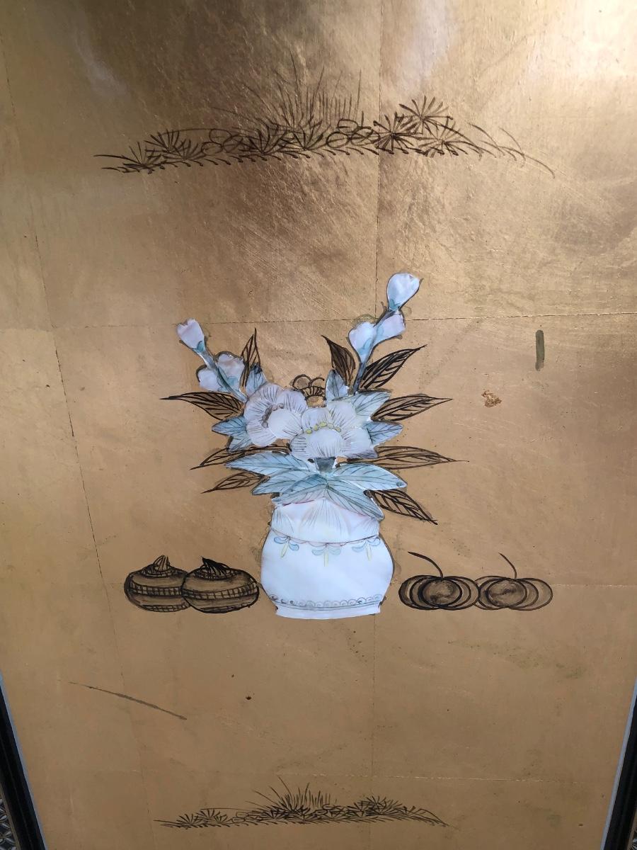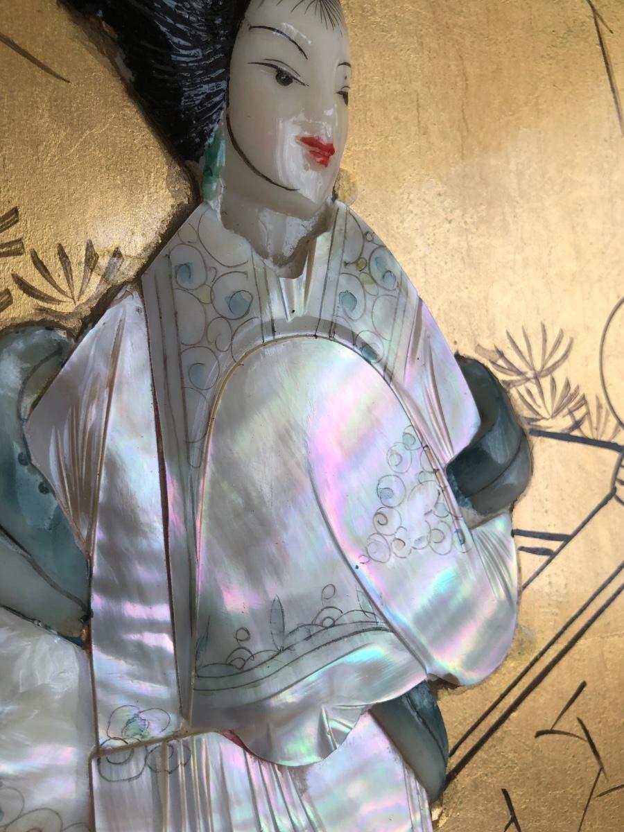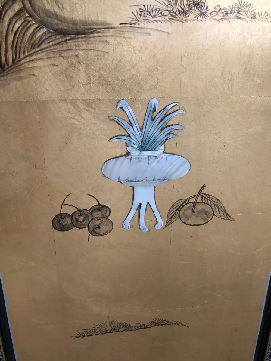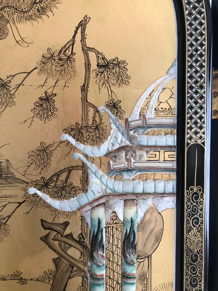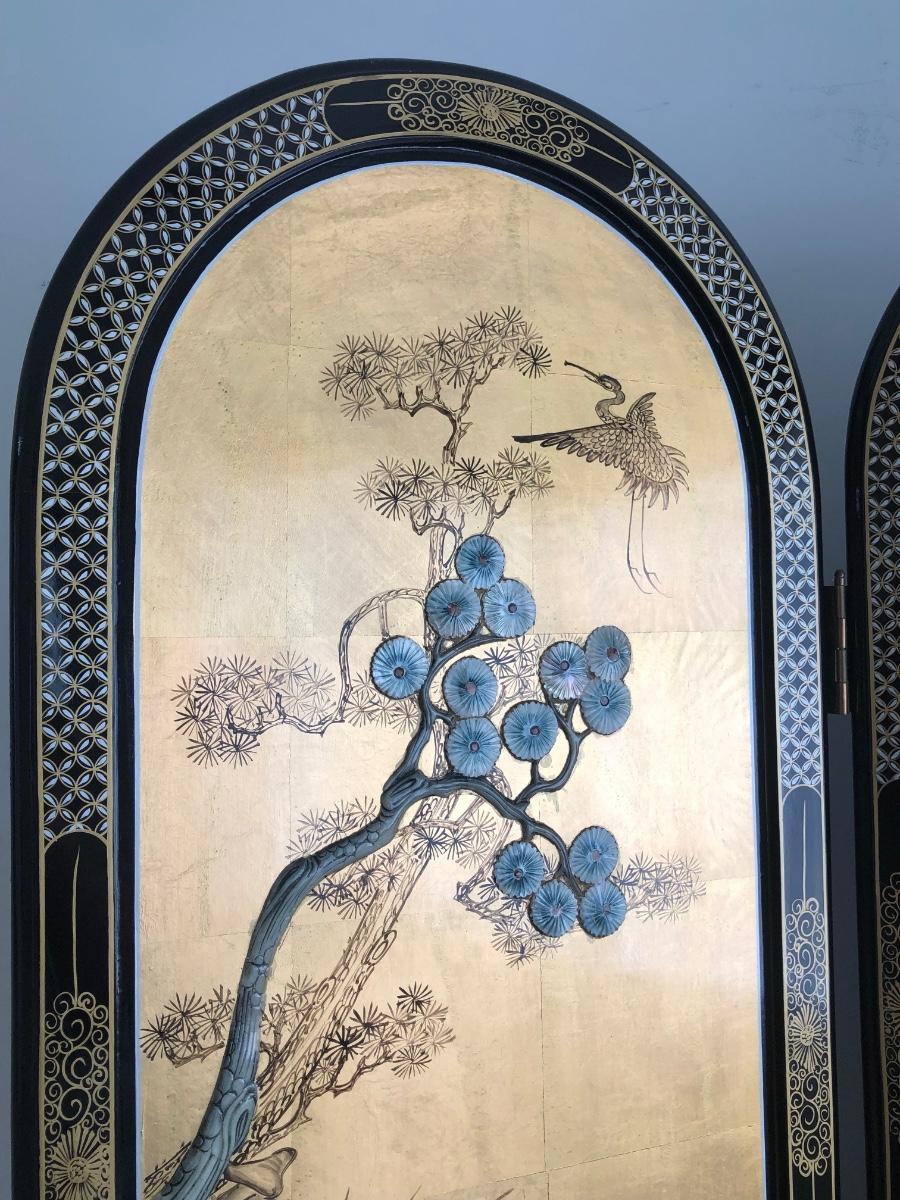 LOT 17G: Gorgeous Mid-Century Asian Folding Screen / Panel Divider w/ Iridescent Carved Accents