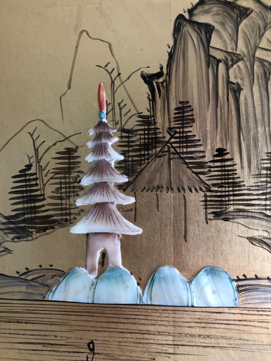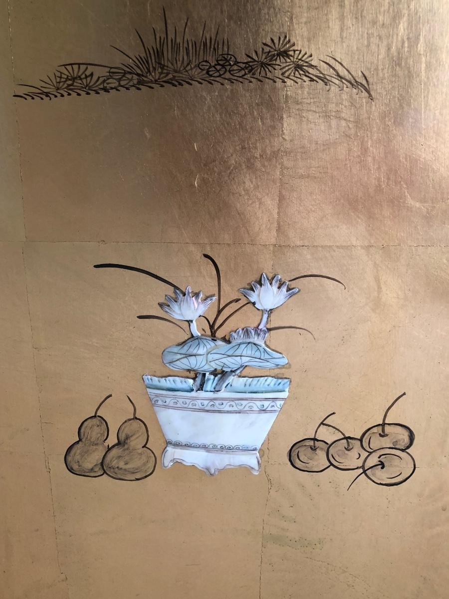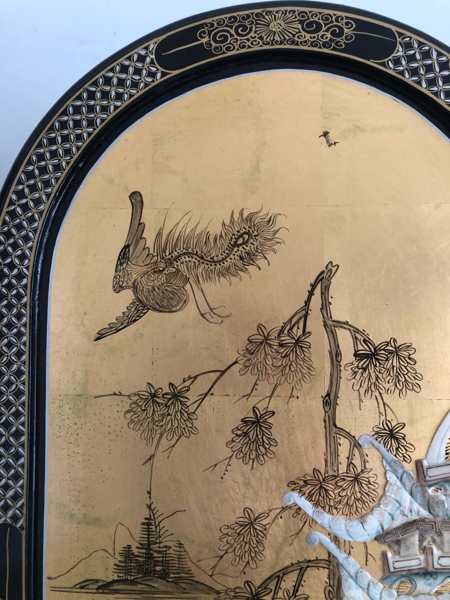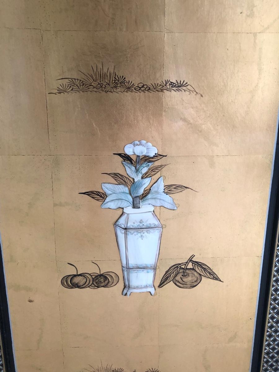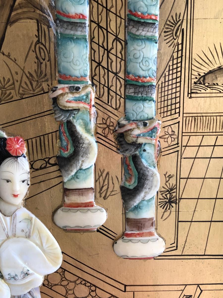 LOT 17G: Gorgeous Mid-Century Asian Folding Screen / Panel Divider w/ Iridescent Carved Accents