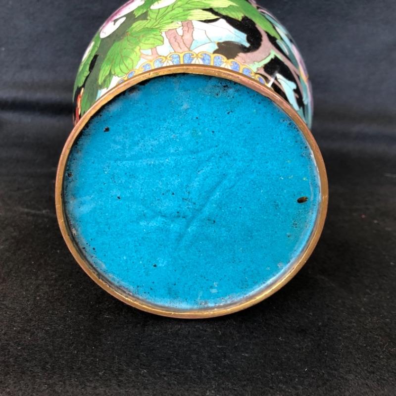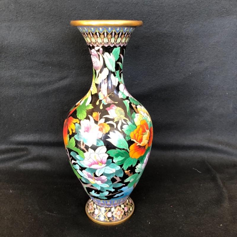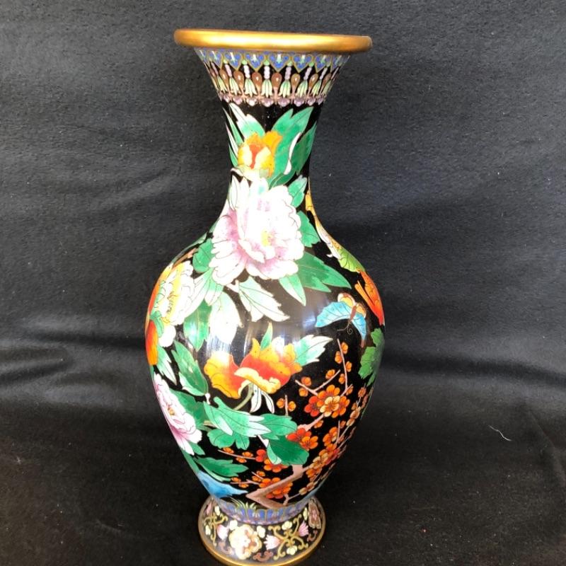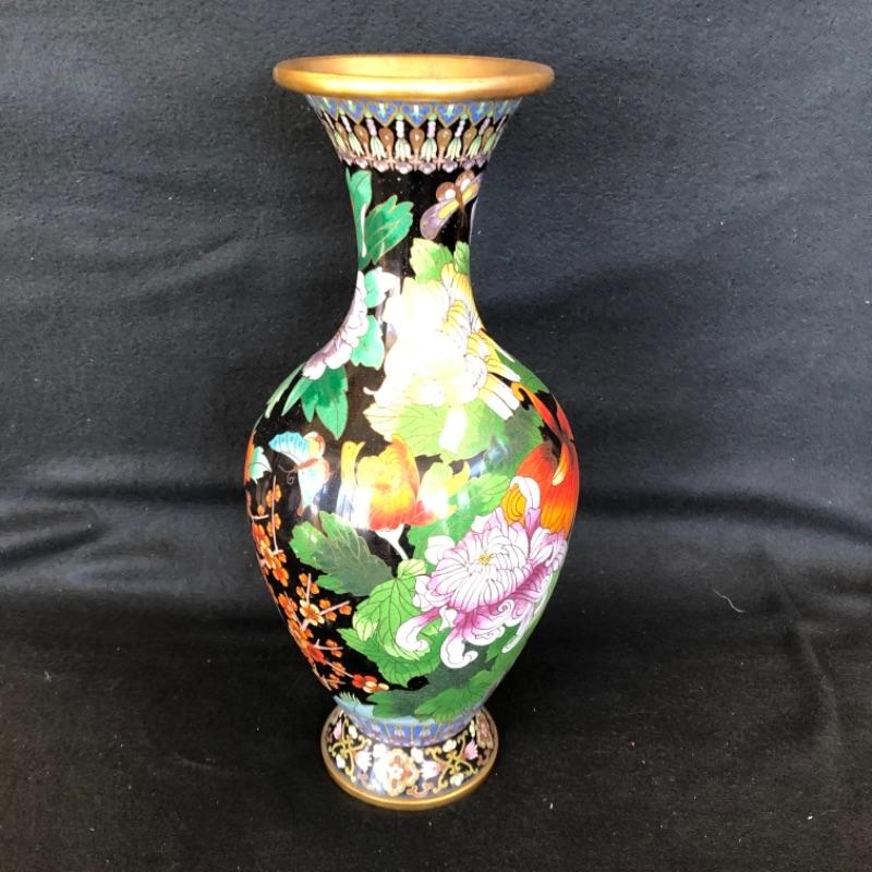 Lot 17P. Cloisonné tall vase, black background “” $112.50
