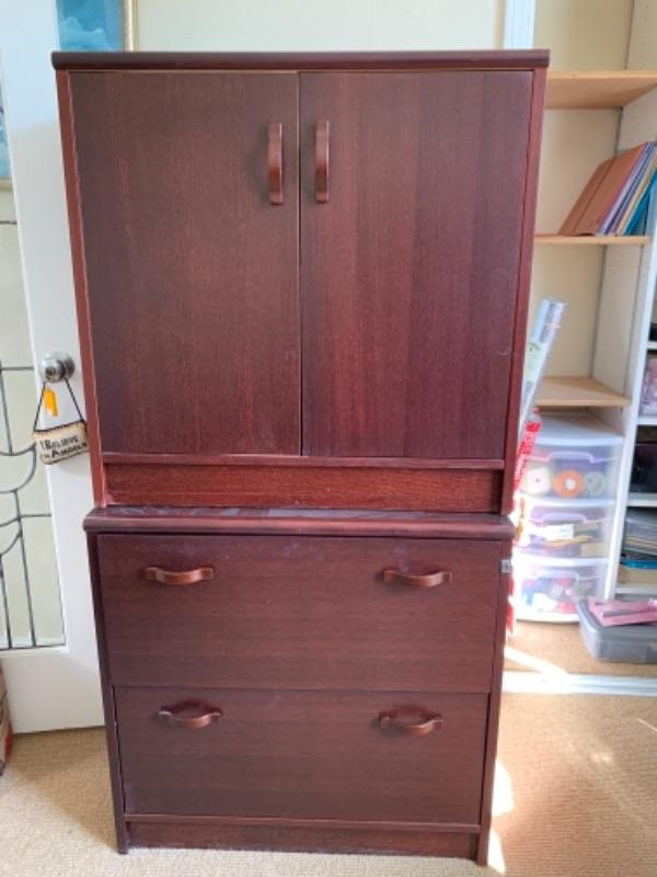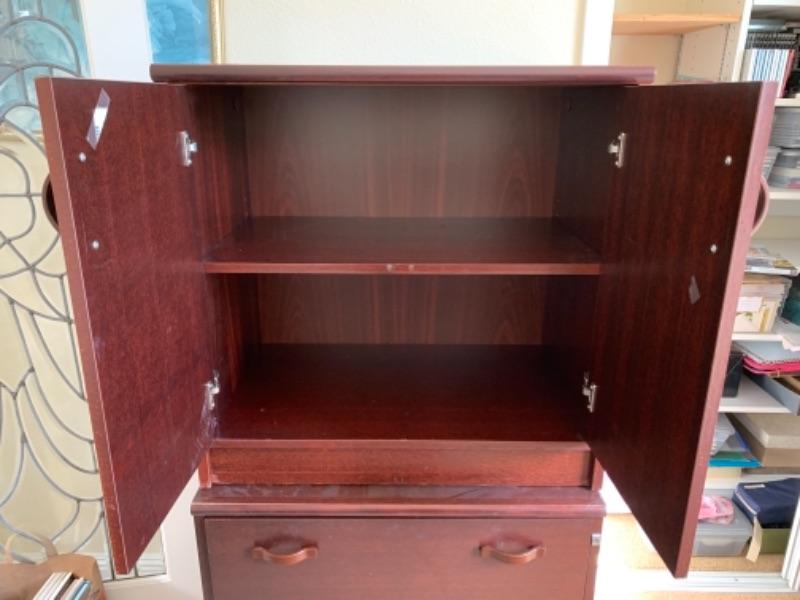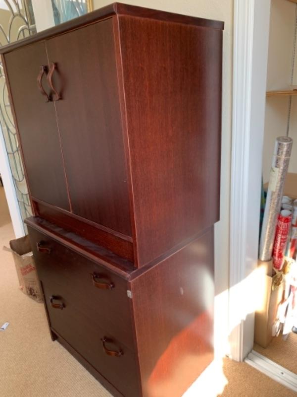 Lot 17U. Office cabinet with drawers, two pieces, 29” wide, 18.5” deep and 51.5” high--$35
