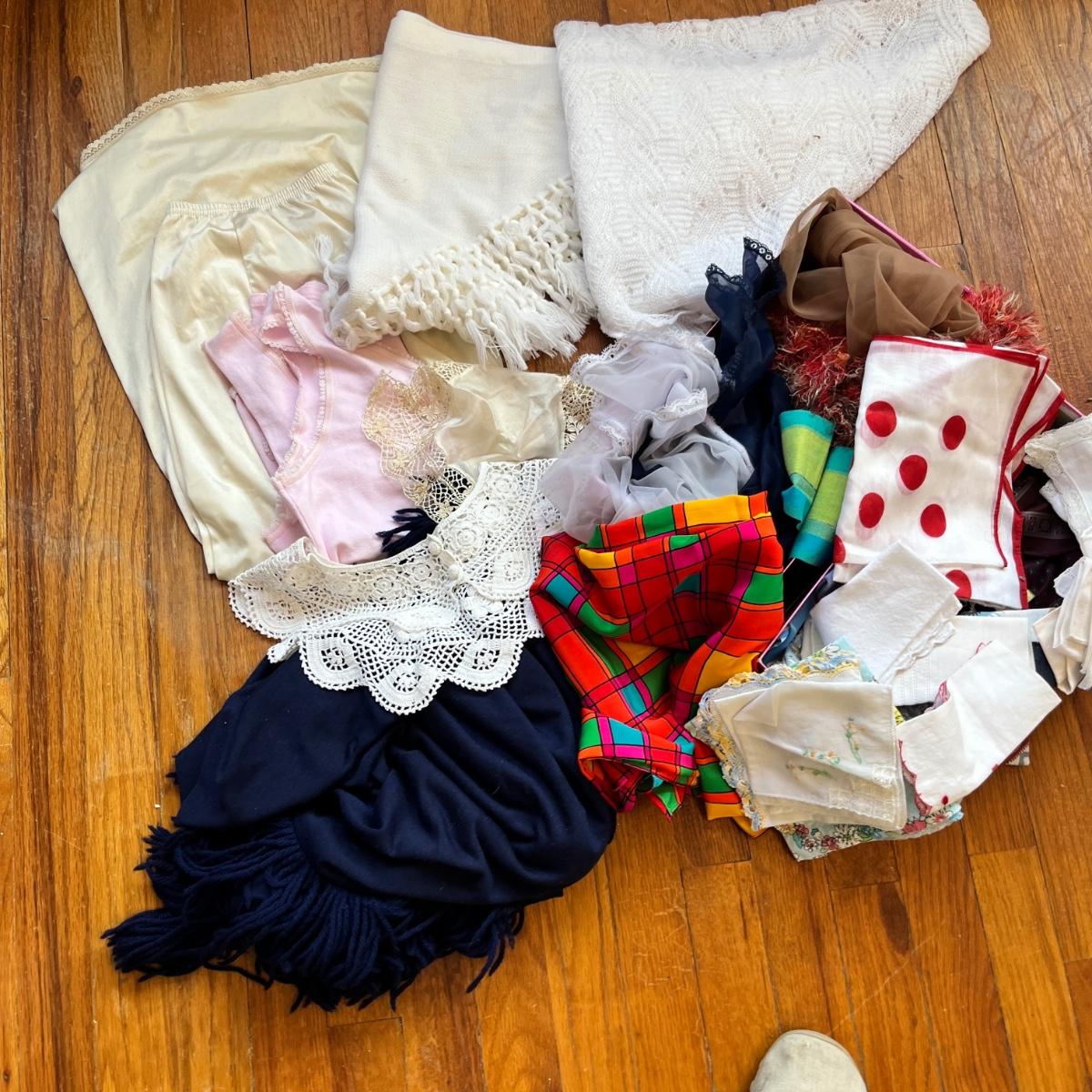 8. Sizes are approximate, you can estimate as our lot number signs are 3.5" long. Also we use an 18" & 36" measuring stick.  We try on certain things to do actual measurements. No guarantees on actual sizes, we try our best!