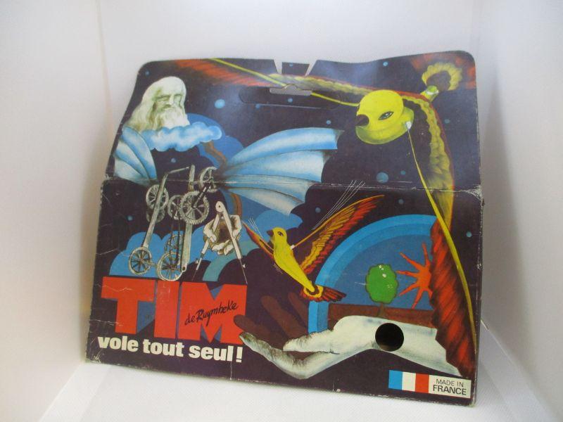I had no idea what this was because the packaging was all in French, but then with a bit of "flying" around Google, I was able to figure out that this little birdie assembles easily and then you wind it's lever under his tail and he "flaps" his wings and flys. I didn't test that part out because with the age of the toy (almost 50 years old), I didn't want to be the one who may damage him. This lot has TWO separately packaged toys, but only one has the rubber band stick.