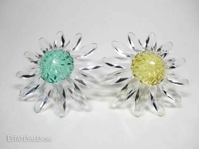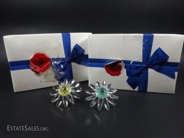 LOT 18: 2 PC SWAROVSKI CRYSTAL MARGUERITE FLOWERS SCS LIMITED EDITION