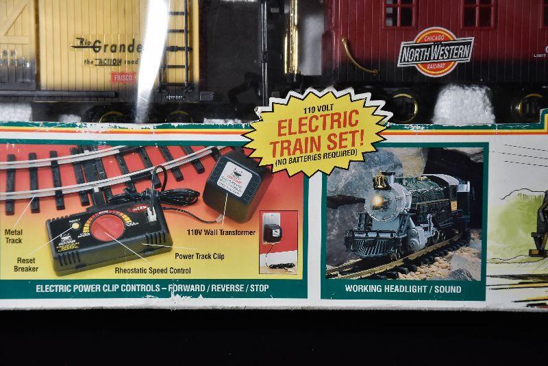Electric Rail King train set in box. Untested.