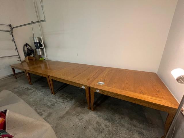 4 Wooden Conference Room Tables. 20 ft long total, 5 ft each. This is just for the tables and nothing else in the photo. All items must be taken. Thanks for bidding!