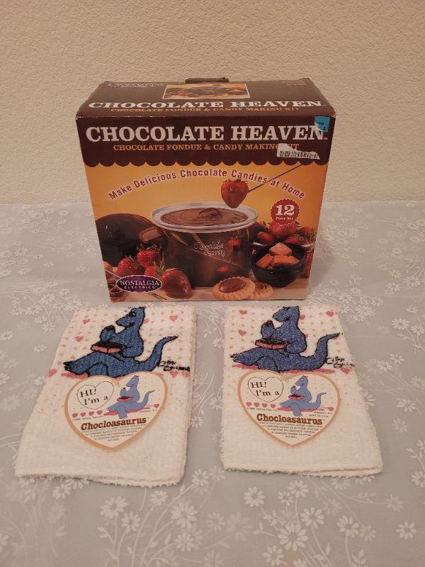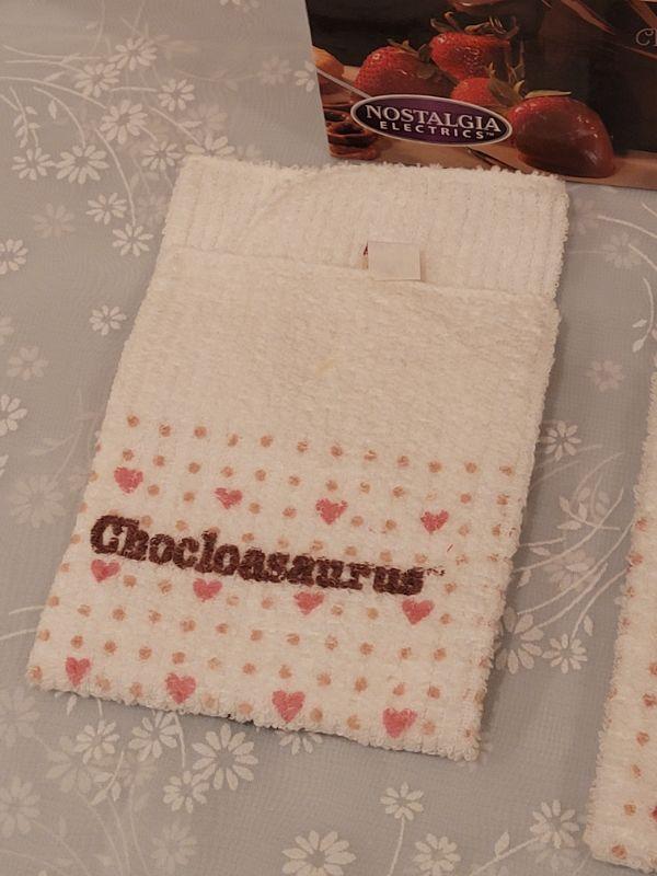 Lot 18: Chocolate Fondue Pot & Chocloasurus Handtowels