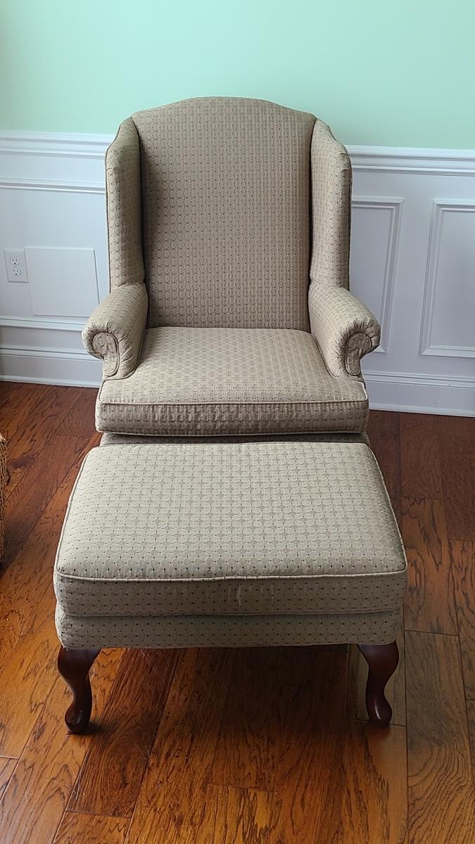 Lot 18: Modern Accent Chair w/ Ottoman (Neutral Perfect in any Room)
