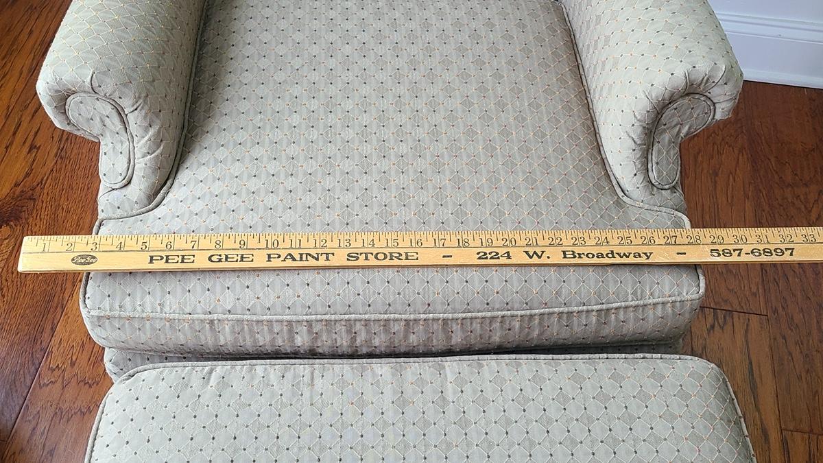 This chair is newer, with a modern neutral pattern that makes it perfect in any room, you can actually change the look with accent pillows. Very comfortable, and clean, ready for its new home! Please see all pictures for content of the lot, condition of the lot, and measurements if taken. Pictures are the best representation of the items listed and items are untested unless indicated in description. Thank you for looking and have fun bidding!