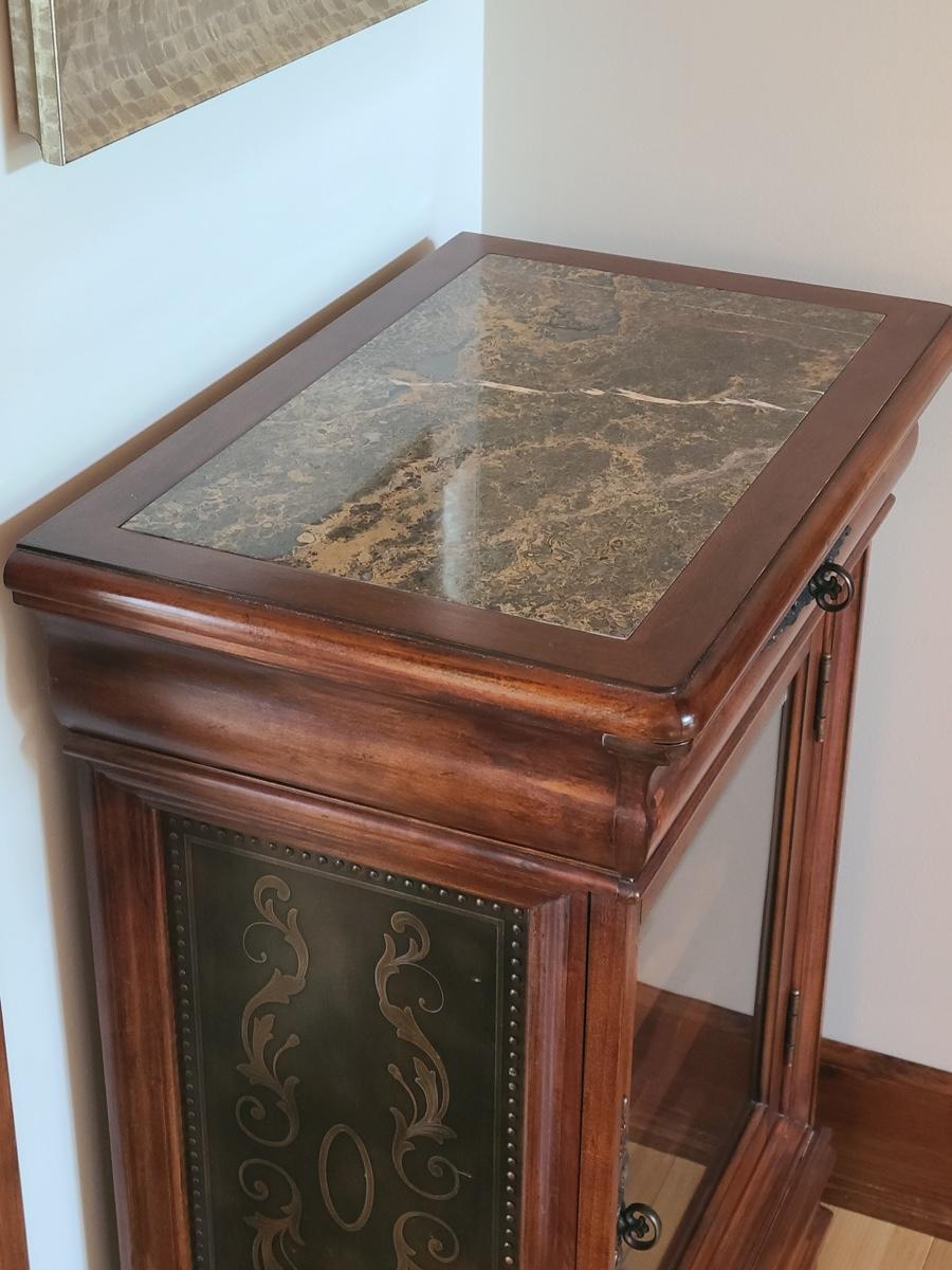 27x17x38. Still looks new with minor nicks at base, this is a solid piece due to craftsmanship! Please see all pictures as they are the best representation of the items. The pictures show condition, measurements if taken, and what is included in the lot. Due to the large amount that we photograph and the time frame, we are not always able to take measurements. All items unless noted, are pre-owned and have been used. If you purchased furniture, you must bring help. We do not allow one person to carry large furniture out on their own. Bring help, tools and a truck for the safety of our clients homes, and your personal safety. Company policy. Thank you.