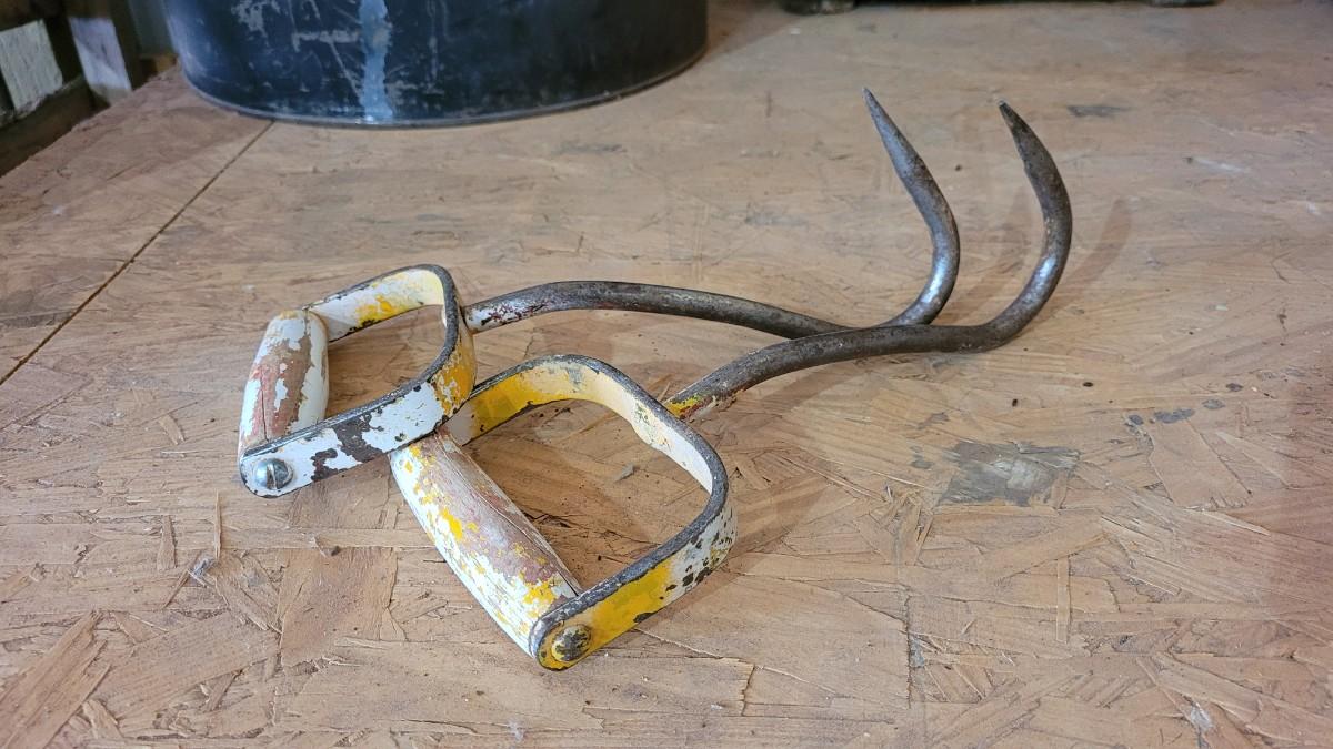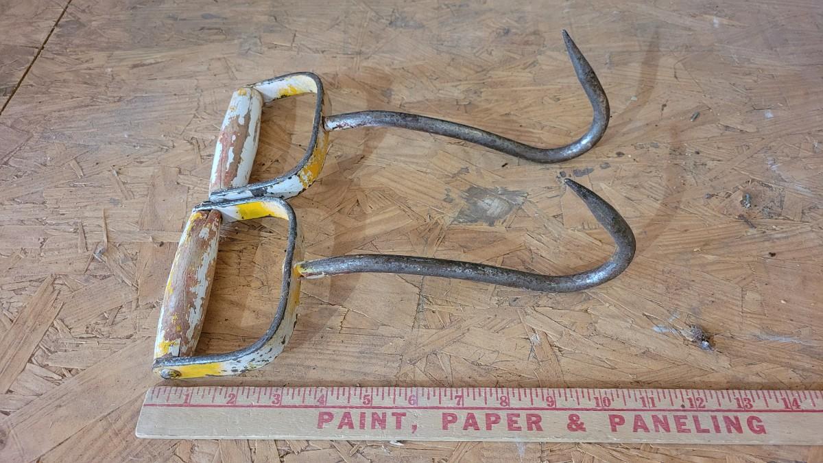 Lot 18: (2) Vintage Chippy Yellow Paint Hay Hooks