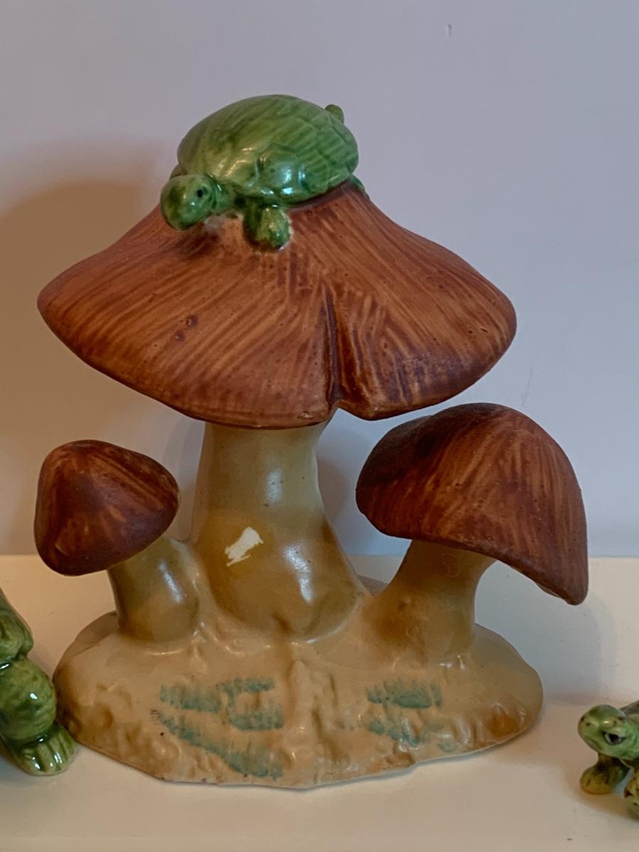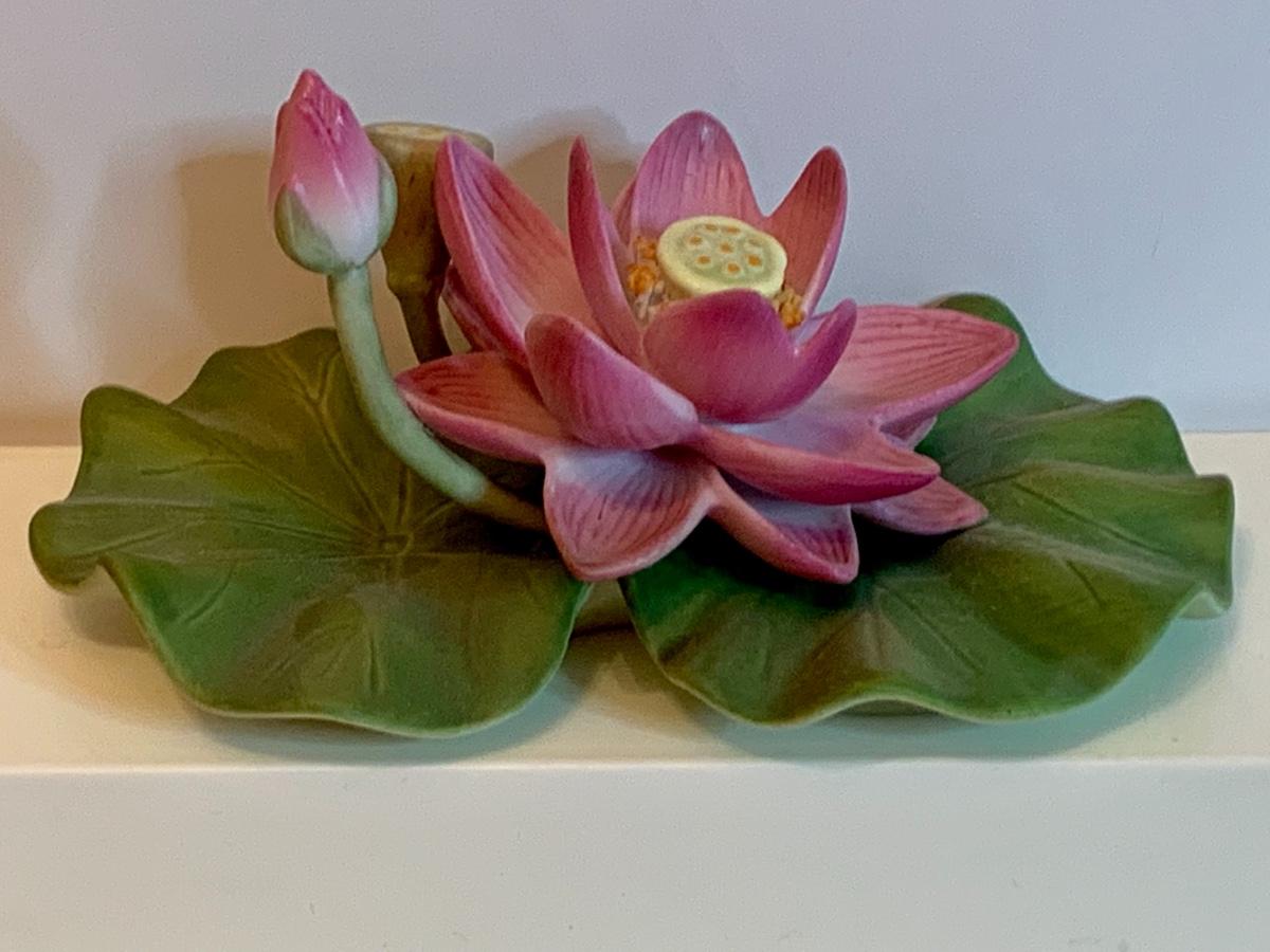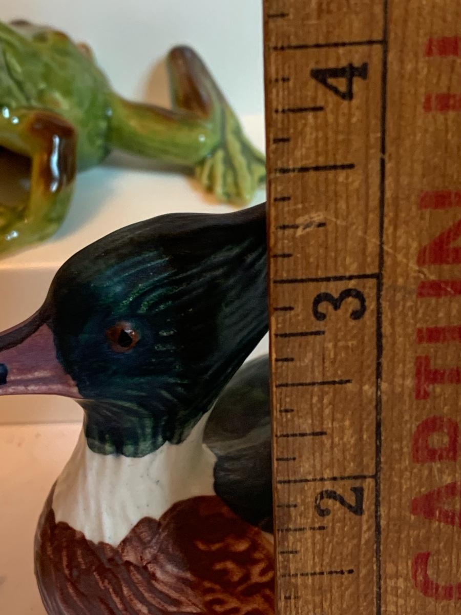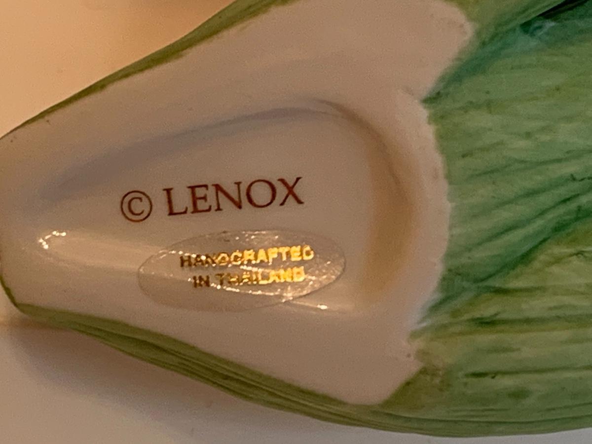 Fine porcelain collectibles: including Lennox Flowers, Weiss Hand Painted porcelain duck, Lennox Wood Duck, Lefton Mushrooms ( has to imperfections as pictured), no boxes with this collection.