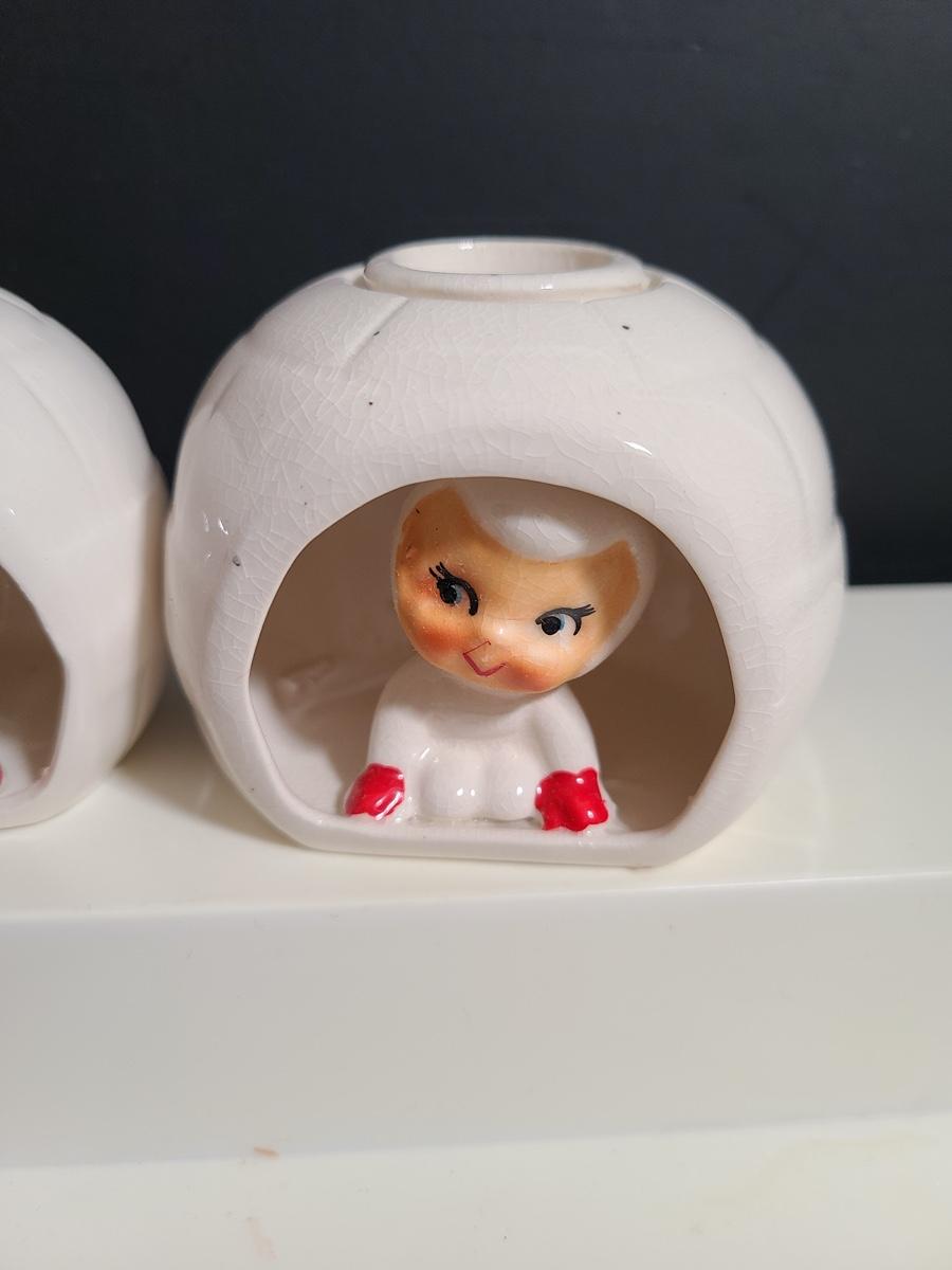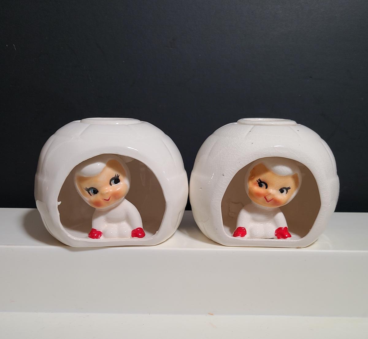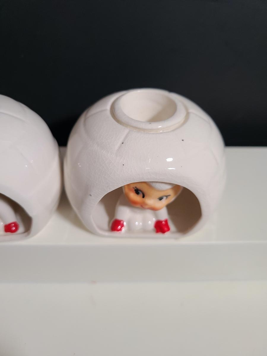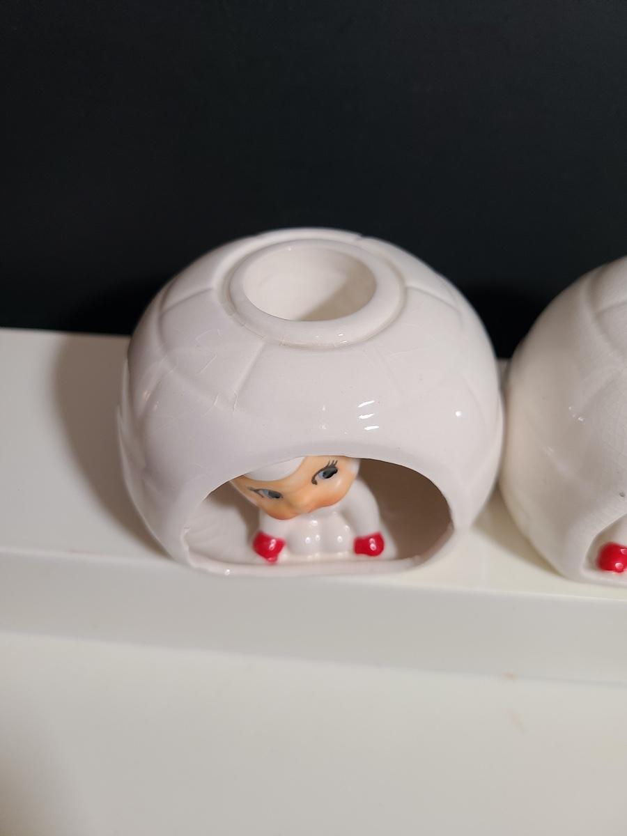 Fun set of candle holders, peeking at each other. This is a rare set and we were lucky to be able to have three sets in this sale! The pictures show condition, measurements if taken, and what is included in the lot. Due to the large amount that we photograph and the time frame, we are not always able to take measurements. All items unless noted, are pre-owned and have been used. If you purchased furniture, you must bring help. We do not allow one person to carry large furniture out on their own. Bring help, tools and a truck for the safety of our client’s homes, and your personal safety. Company policy. Thank you.