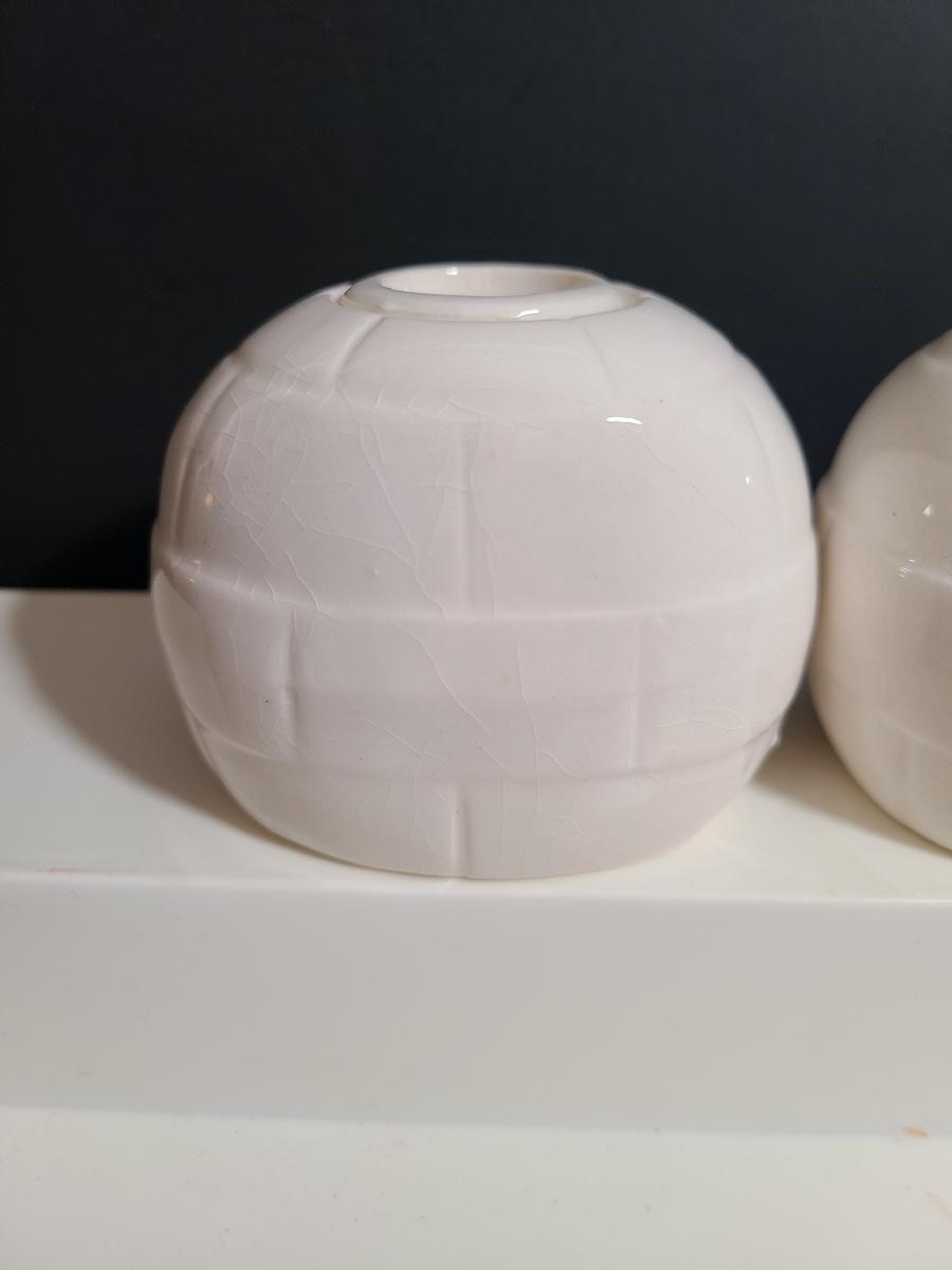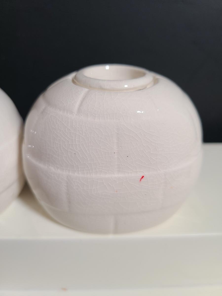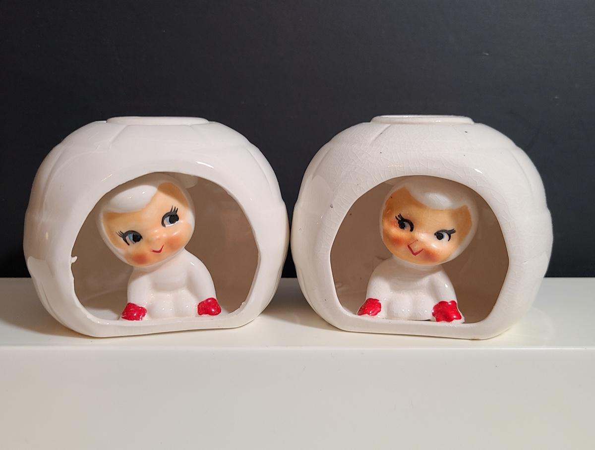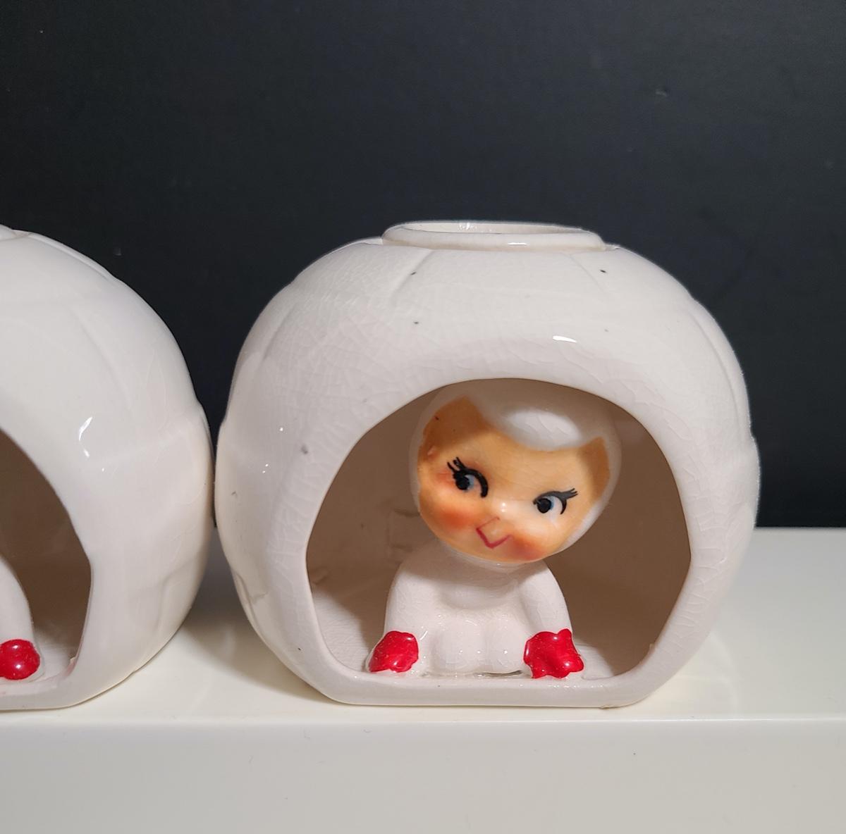 Fun set of candle holders, peeking at each other. This is a rare set and we were lucky to be able to have three sets in this sale! The pictures show condition, measurements if taken, and what is included in the lot. Due to the large amount that we photograph and the time frame, we are not always able to take measurements. All items unless noted, are pre-owned and have been used. If you purchased furniture, you must bring help. We do not allow one person to carry large furniture out on their own. Bring help, tools and a truck for the safety of our client’s homes, and your personal safety. Company policy. Thank you.