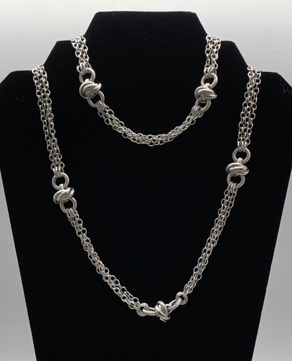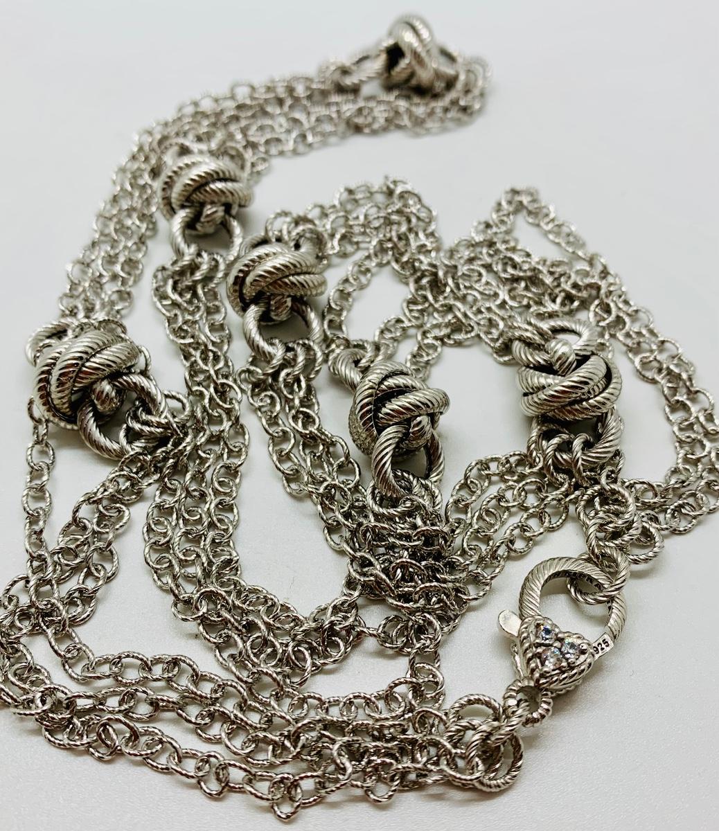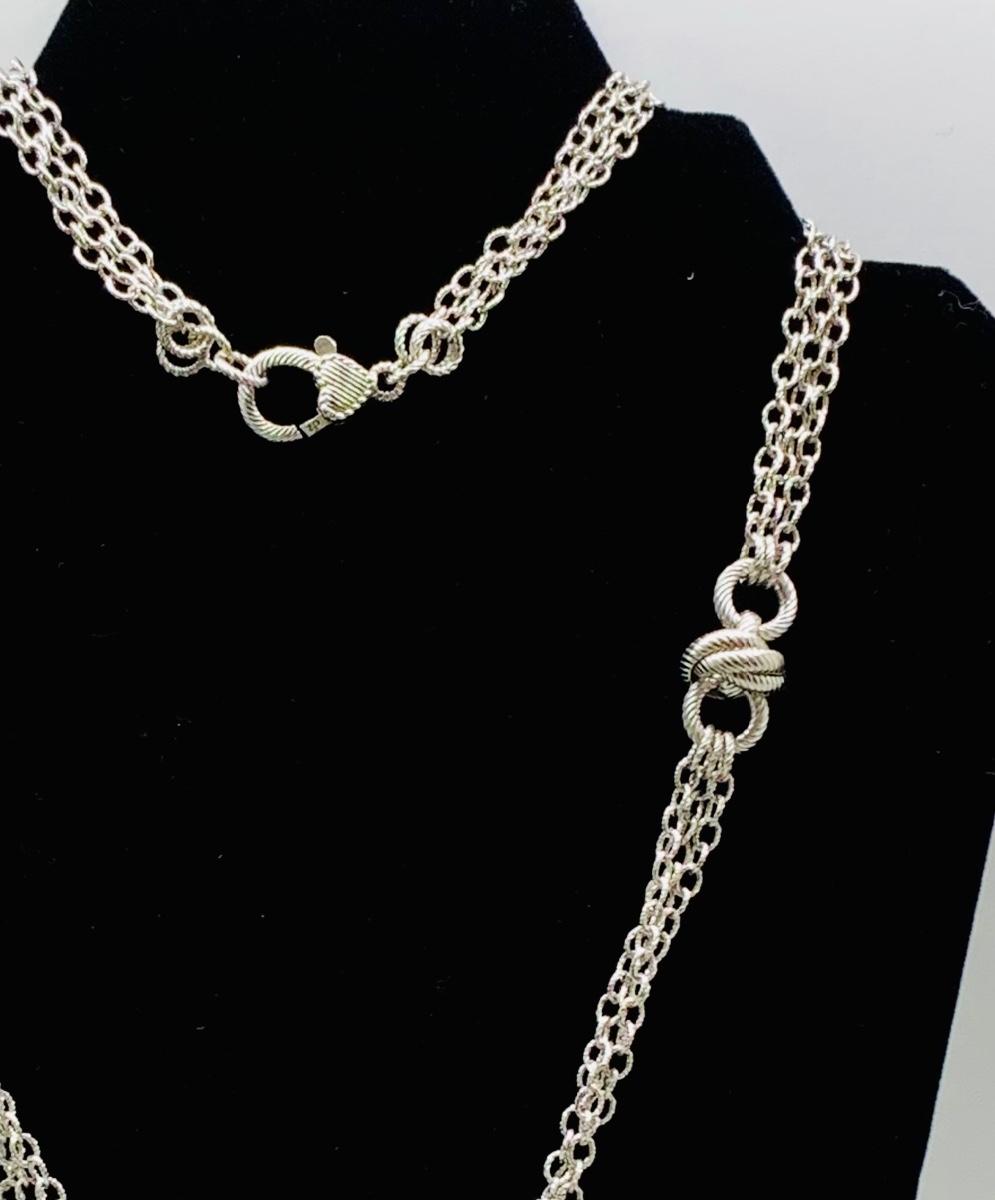 Judith Ripka silver multi strand 34inch necklace with CZ, 925.