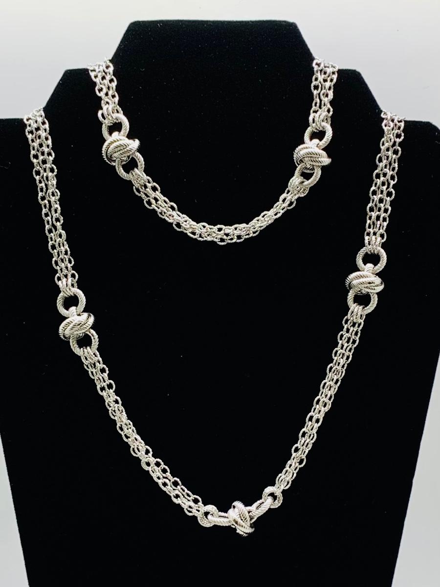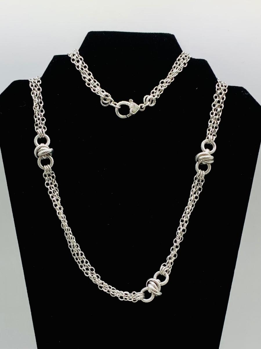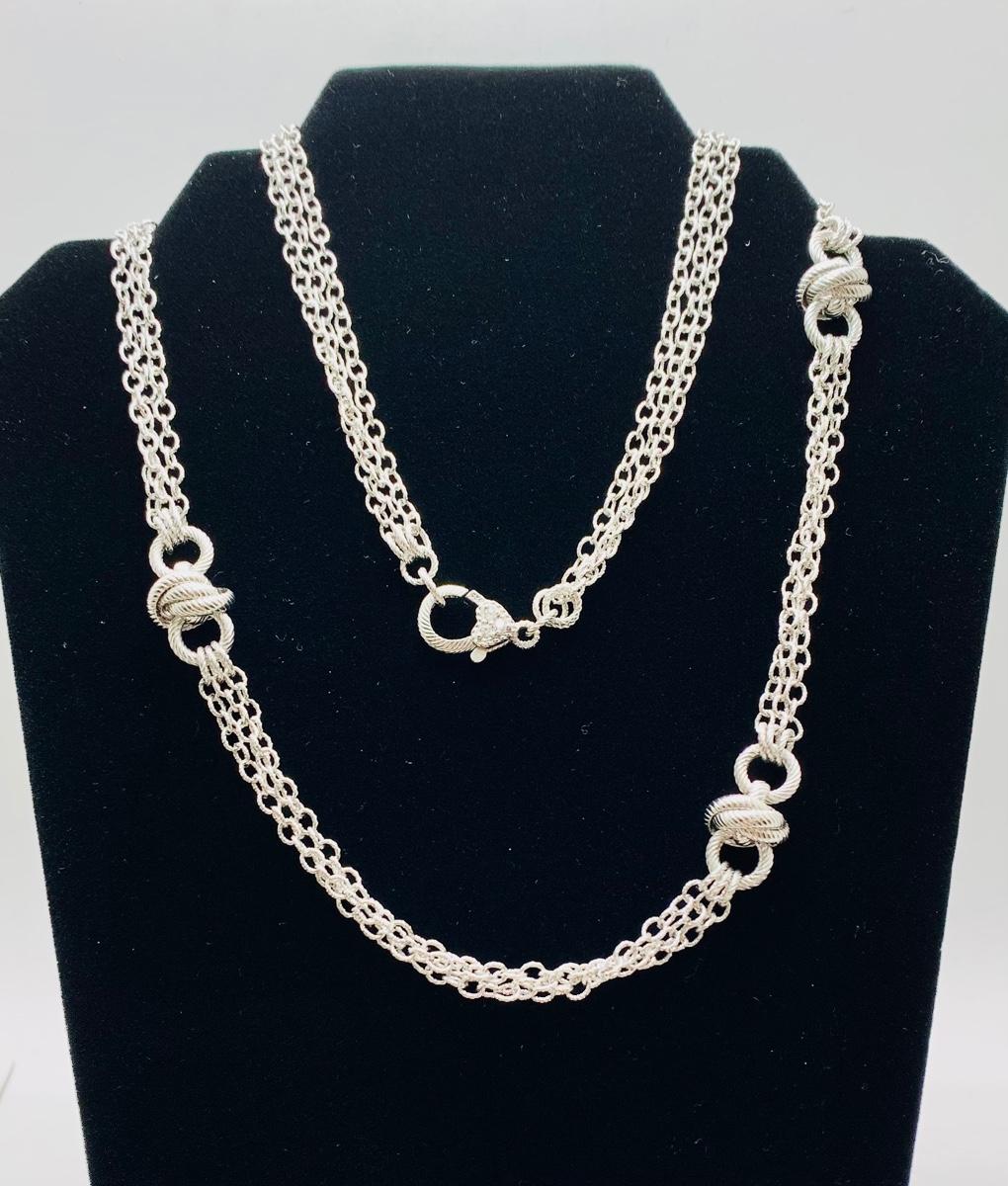 Judith Ripka silver multi strand 34inch necklace with CZ, 925.