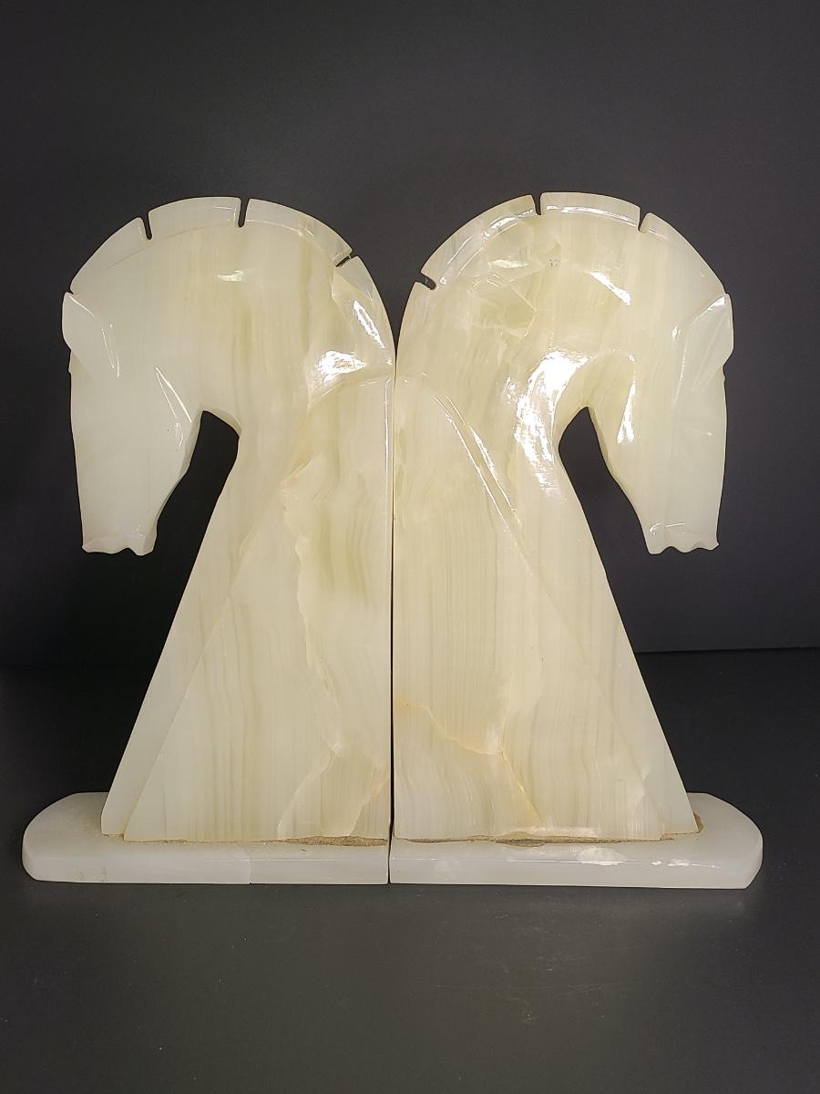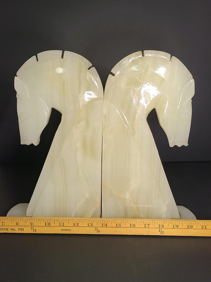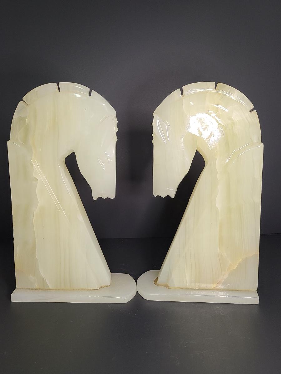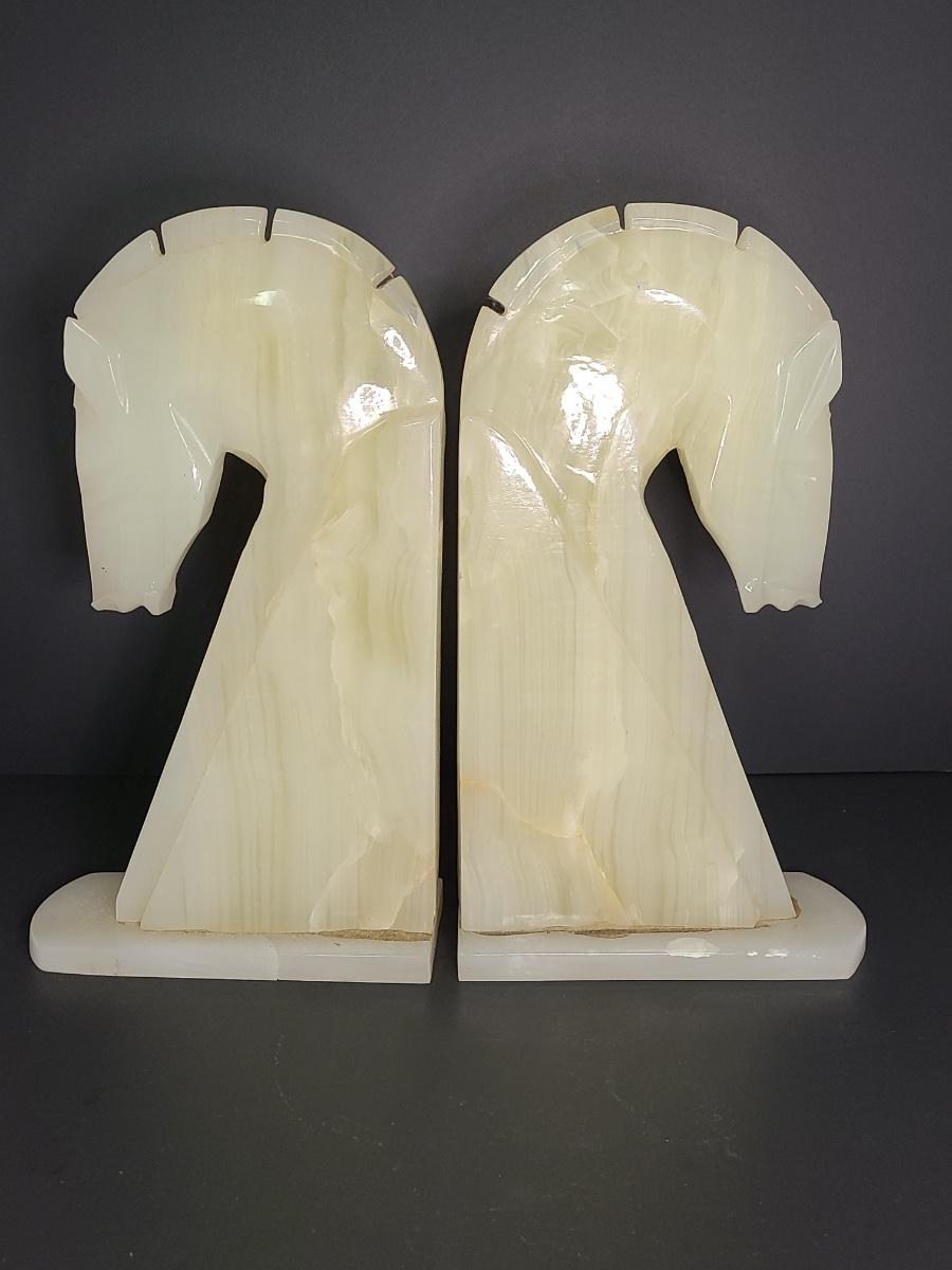Lot 189: Vintage 1970's Onyx/Natural Stone Horse Head Bookends (12 inches tall)