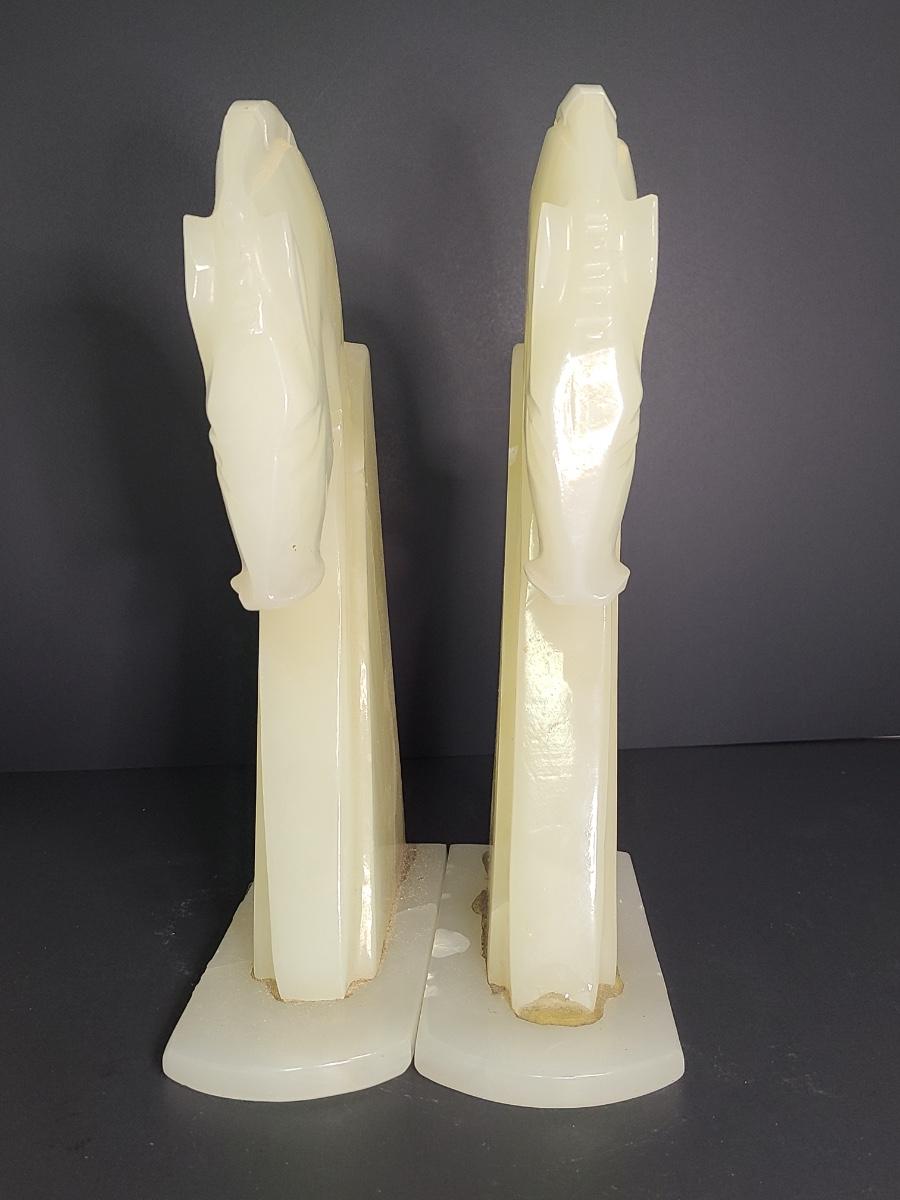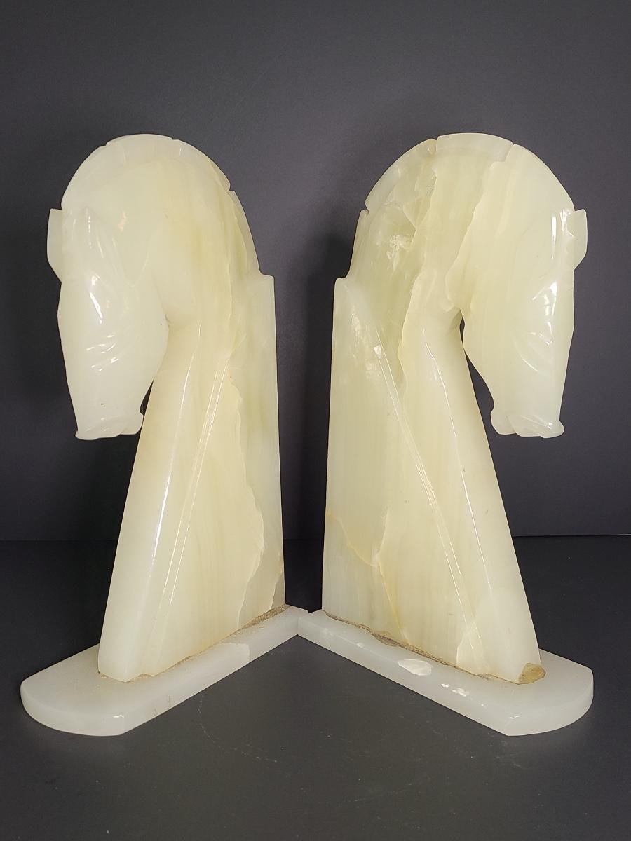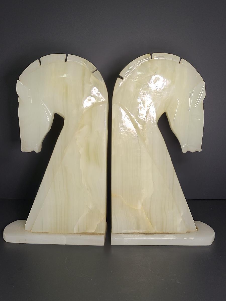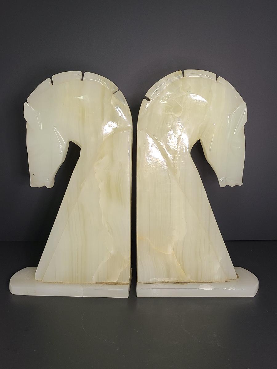 Lot 189: Vintage 1970's Onyx/Natural Stone Horse Head Bookends (12 inches tall)