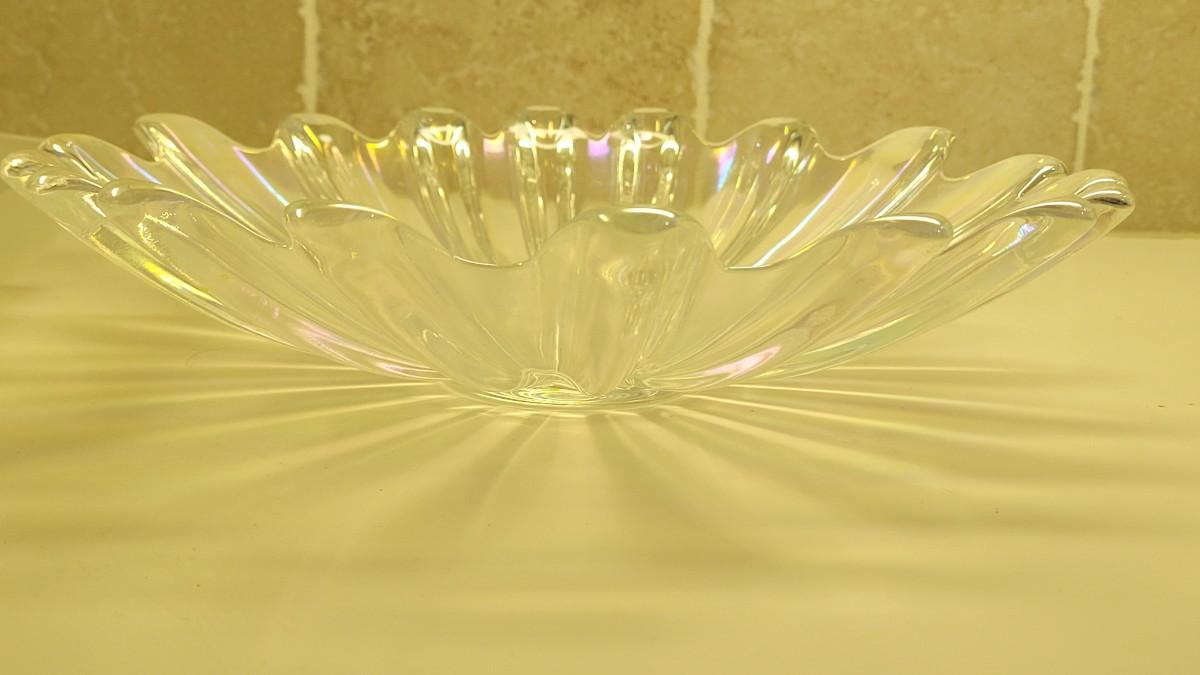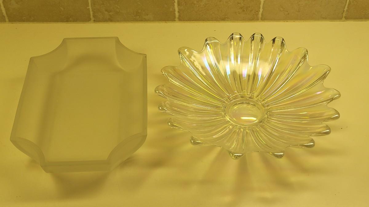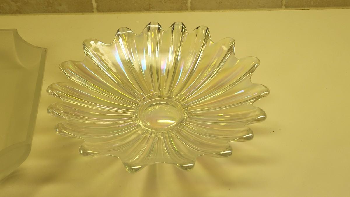 Lot 18: Vintage Iridescent Sunburst Bowl and Frosted Glass Cobbler Dish