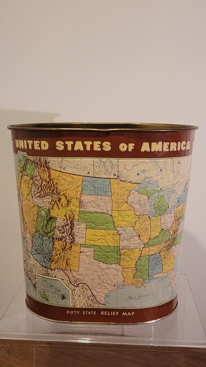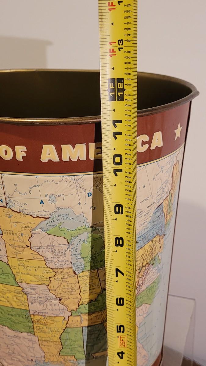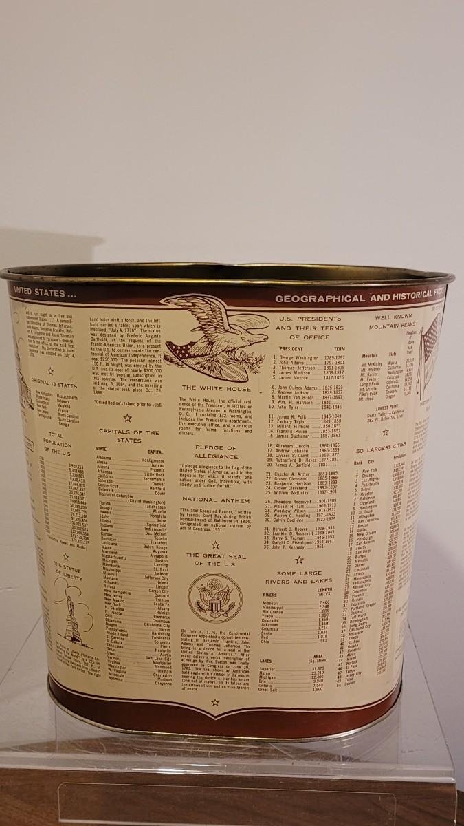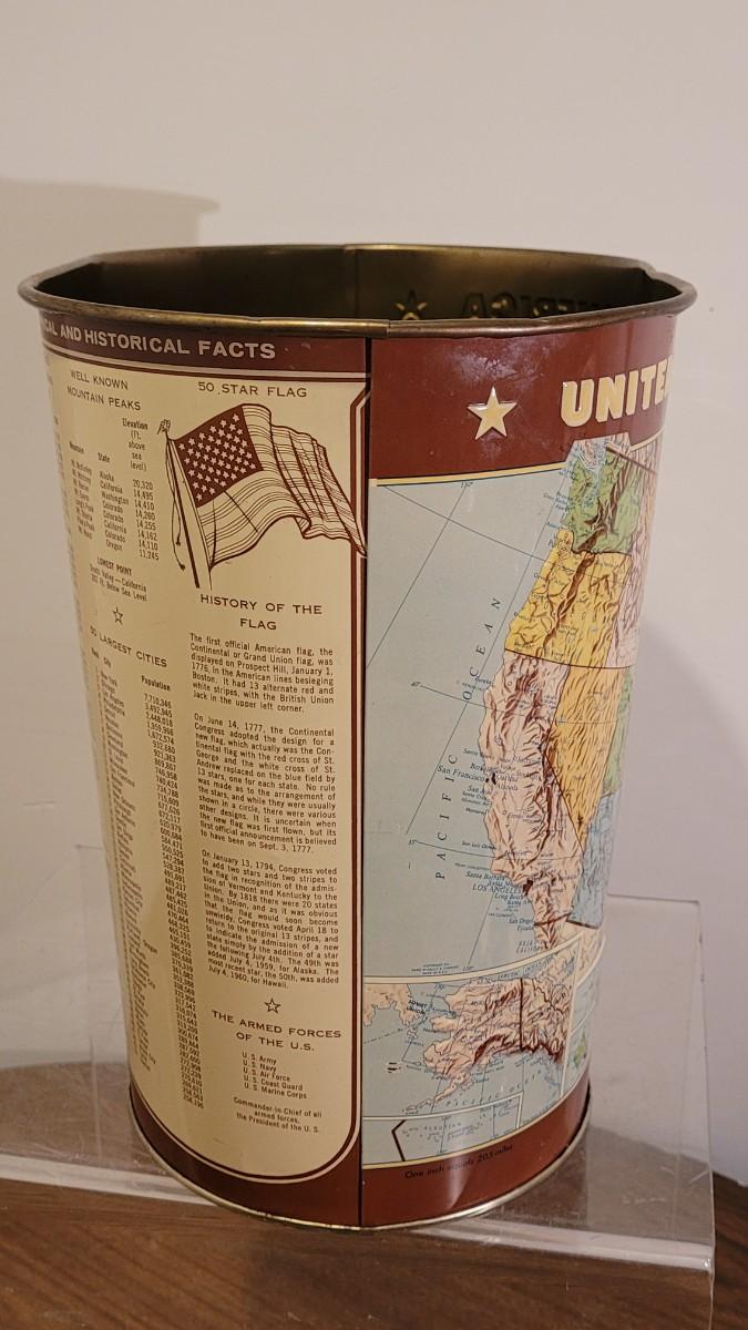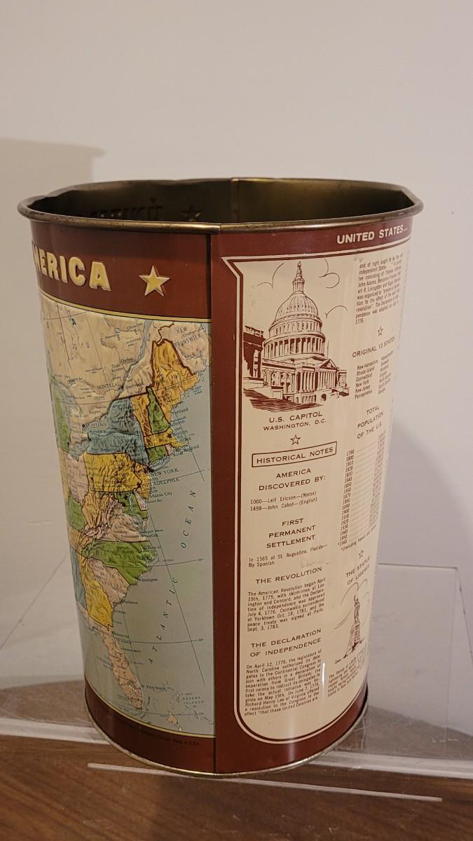Lot 18: Vintage Metal United States Map and Facts Garbage Can