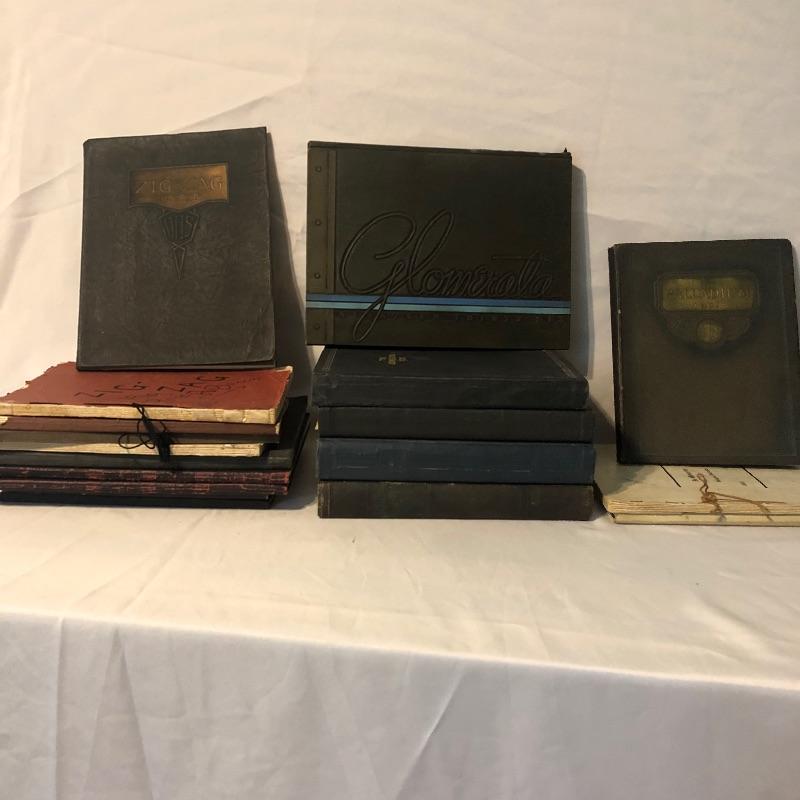 This set of memories includes eighteen yearbooks dating from 1919 to 1939. Included are eleven editions of the “˜Zig Zag’ from Opelkia High School, five “˜Glomerata’ from The Alabama Polytechnic Institute in Aubrurn, a “˜Paladium from State Normal School in Troy and one “˜Sundial’ from Montreat College. Most books are hard bound. There are several paper covered folio bound editions of the “˜Zig Zag’. There is some wear and tear but all of the books are in very well loved shape for their age. Shipping available.