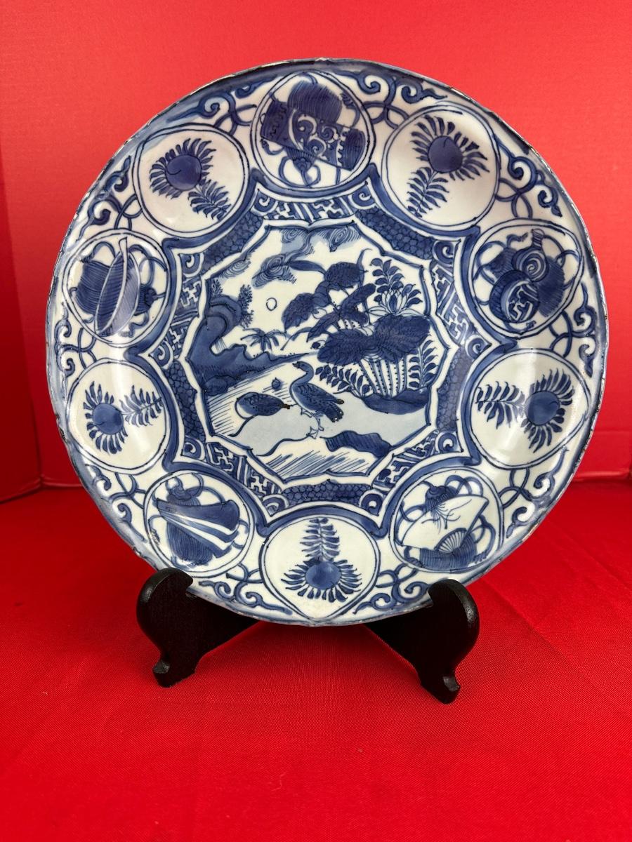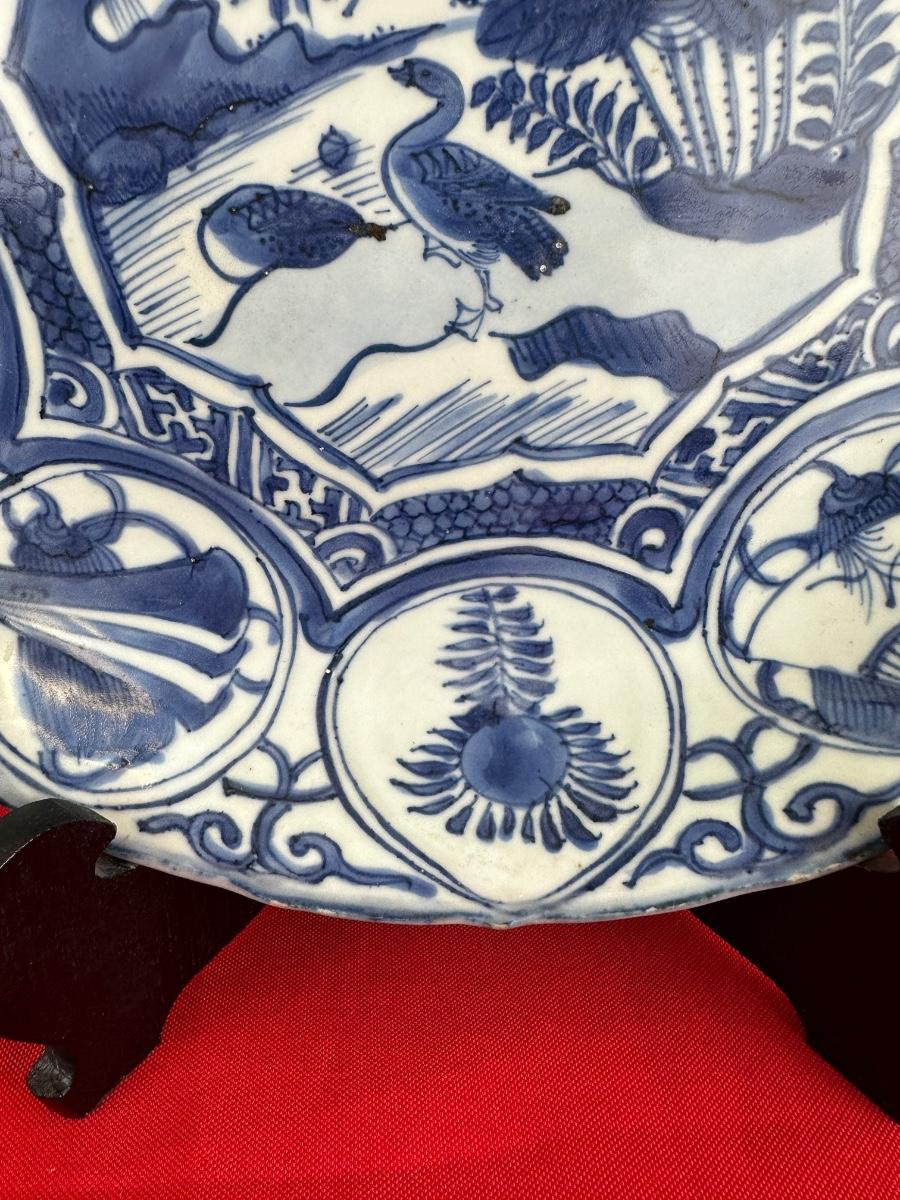 11" INCH ANTIQUE CHINESE BOWL, CENTER MEDALLION WITH EXOTIC BIRDS AND FOLIAGE, NO MAKERS MARK EVIDENT, WATER AND FLORAL MEDALLION BORDERS