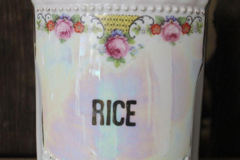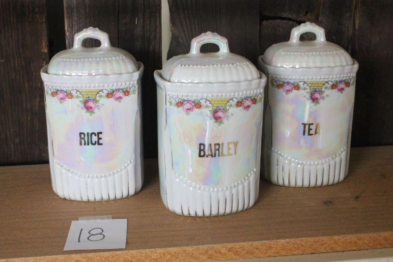 Lot 18 Antique Germany Iridescent Rose Canisters 3pcs.