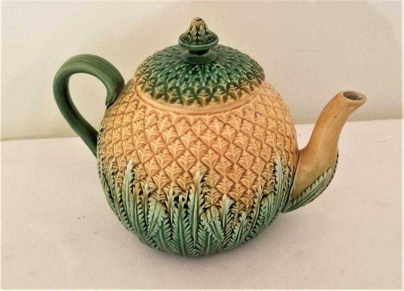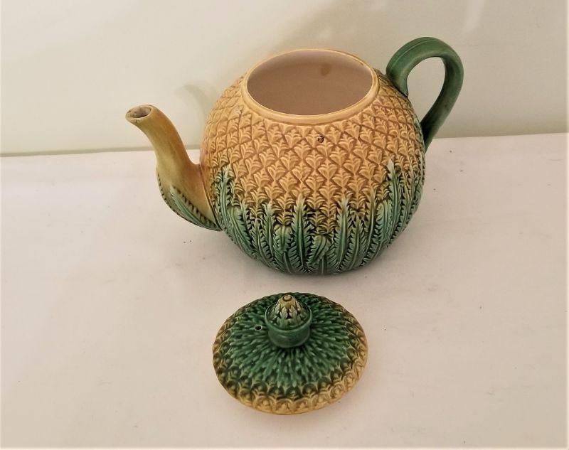 Lot #18 Antique Majolica Tea Pot - a beauty
