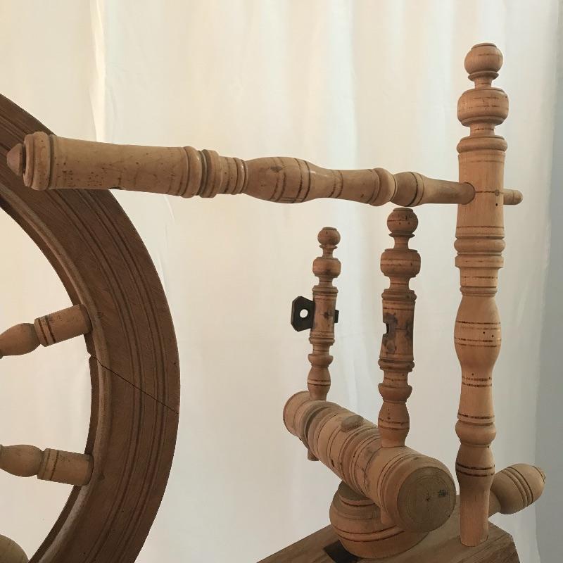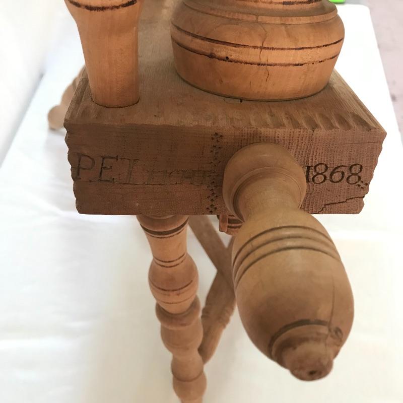 We’ll spare you any reference to Sleeping Beauty or Rumplestilskin. This beauty has a mark that looks like PEI Fight 1868. Wheel spins smoothly, although it looks as though the attachment has come apart. See photos. Everything appears to be in fine working order. Come to the preview to see this beauty for yourself! Piece is approximately 33” long and 34” high. No shipping.