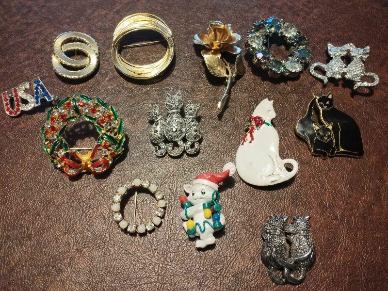 Lot of 18 Assorted Brooches, some are marked are pictured below
