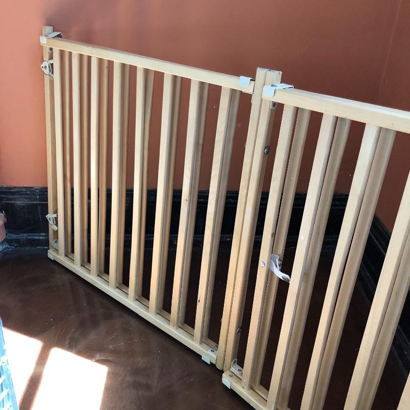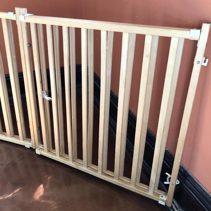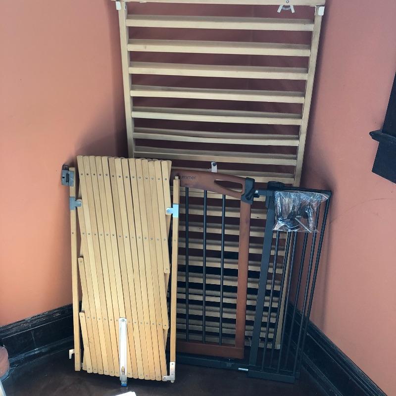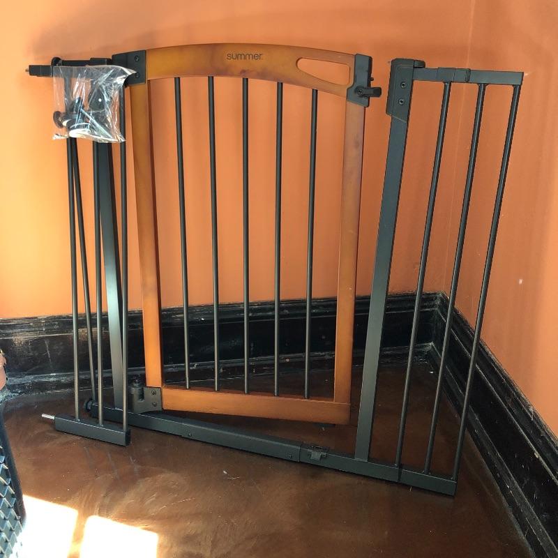 Keep your animals or children out of rooms they don’t belong. Lot includes one wooden accordion style gate, one Summer brand wood and metal gate and adjustable wooden gate that has four sections each measuring 23” x 24”.