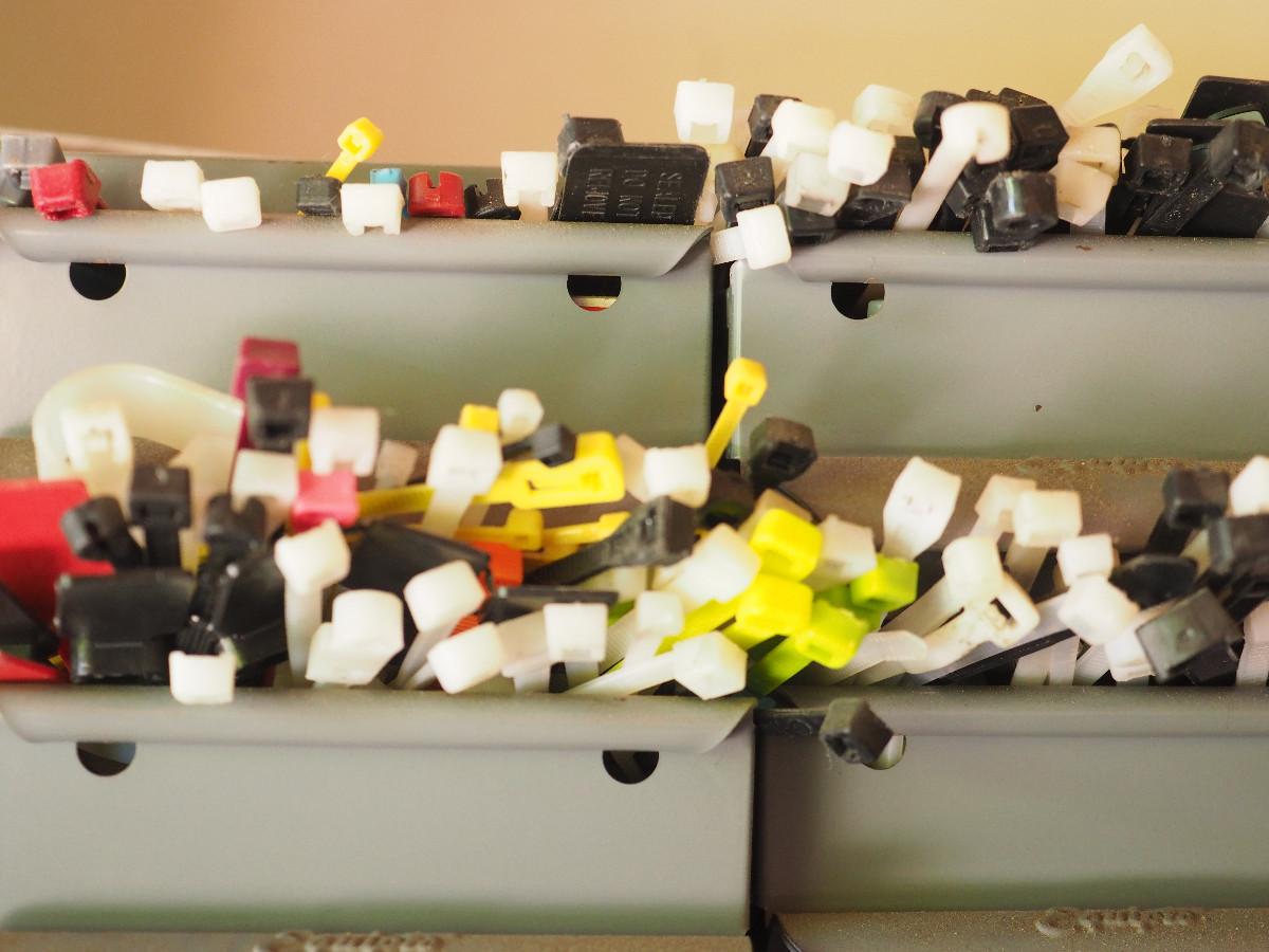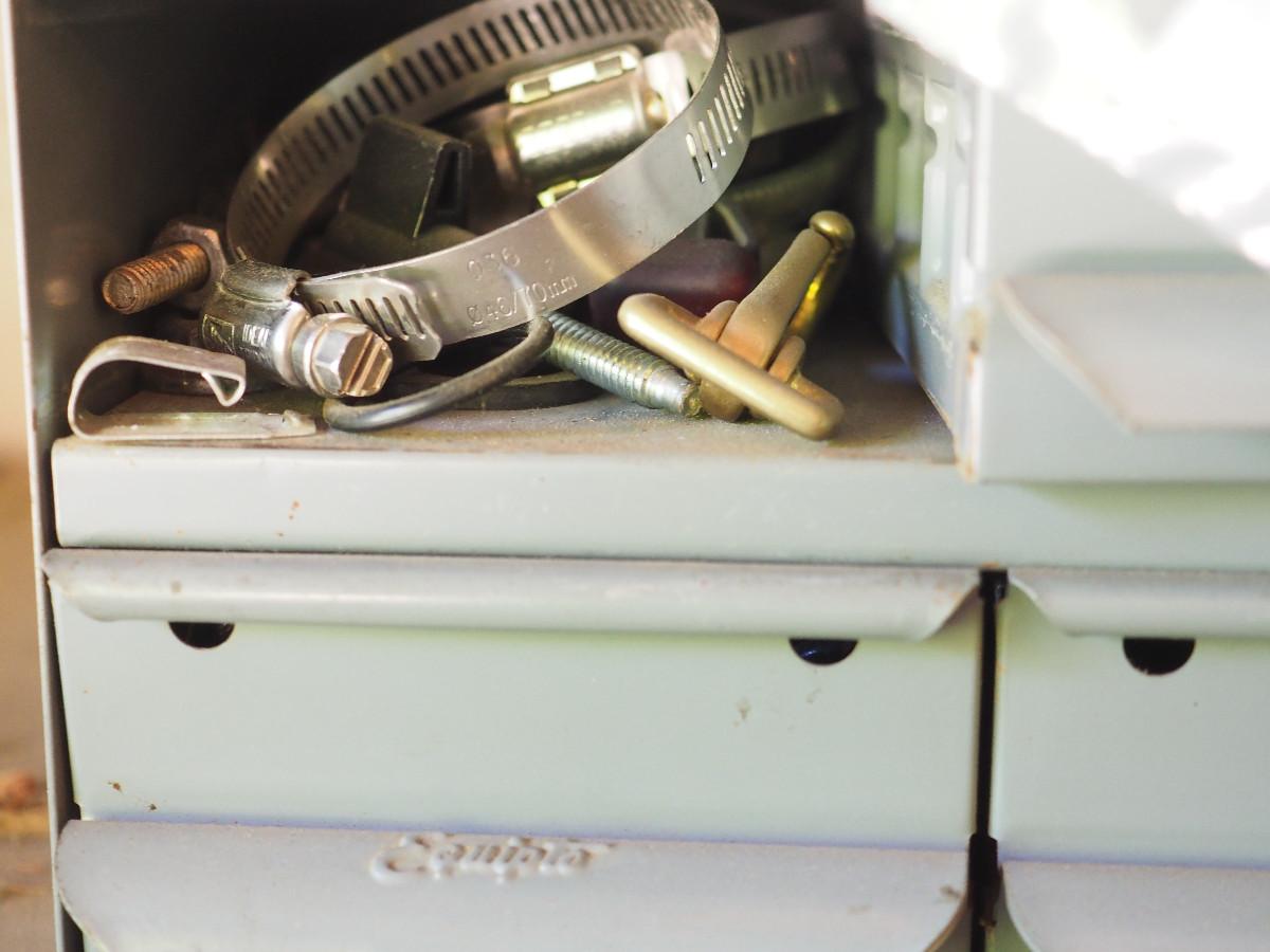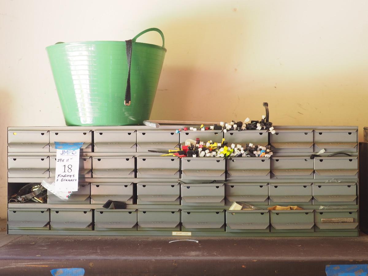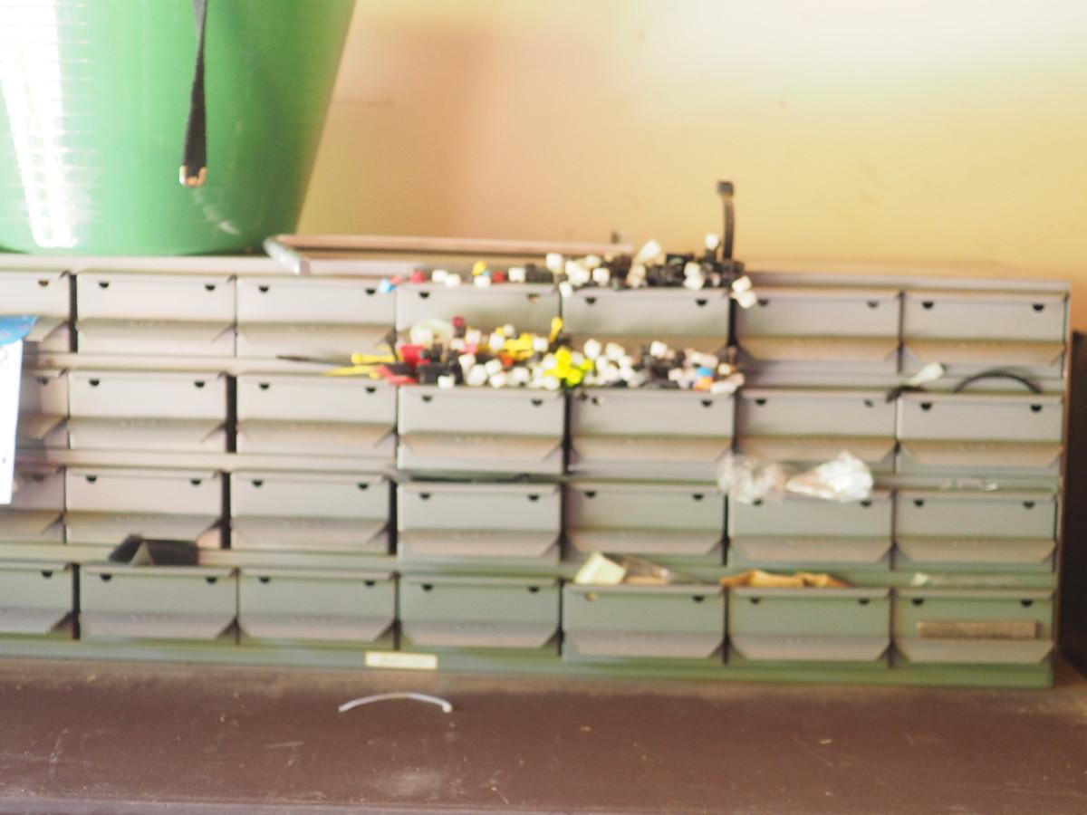 Lot 18 Double drawer set crammed full of useful garage items: Cable ties, Nuts and bolts and a lot of drawers. Each has a bunch of especially useful findings, like screws, bolts and many more