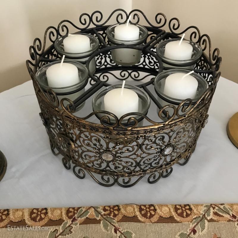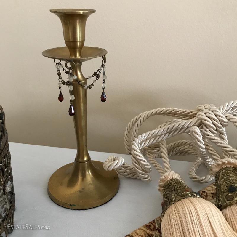 Accent your home with elegance and style. Lot includes three brass votive candle holders, one taper candle holder, candle snuffer, wall hanging, duck motif key holder, vase, six-votive candle holder and three curtain tassels. See photos for details.