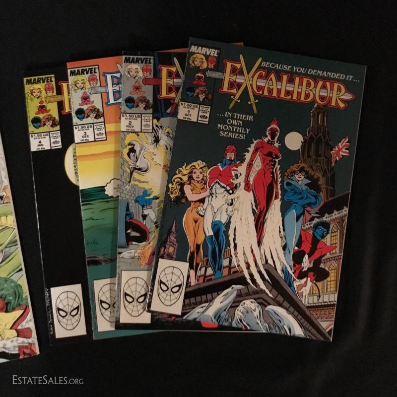 5 issues of "Excalibur" by Marvel Comics, 6 Issues of "Eddy Current" by Mad Dog, 3 Issues of "Ex-Mutants," and more miscellaneous titles starting with “E”. Includes a Greek Marvel Comic. 30 total comics in this Lot. Ships in one Priority box or local pick up in Asheville, NC.