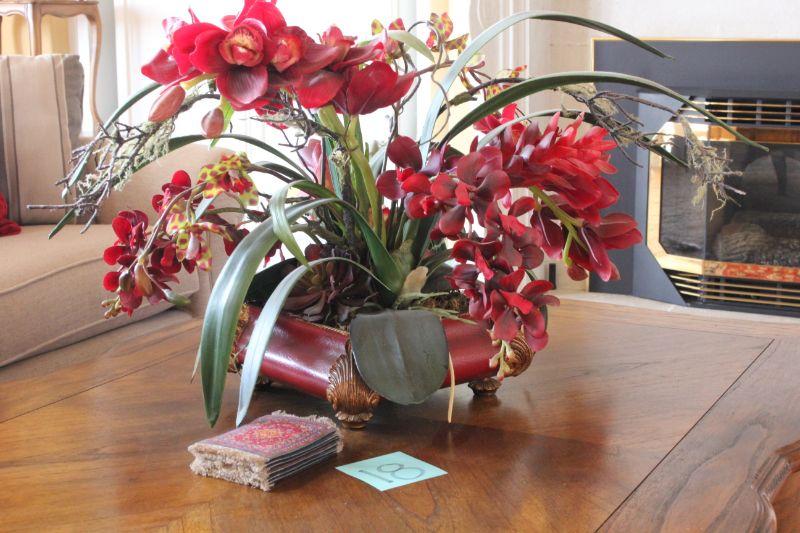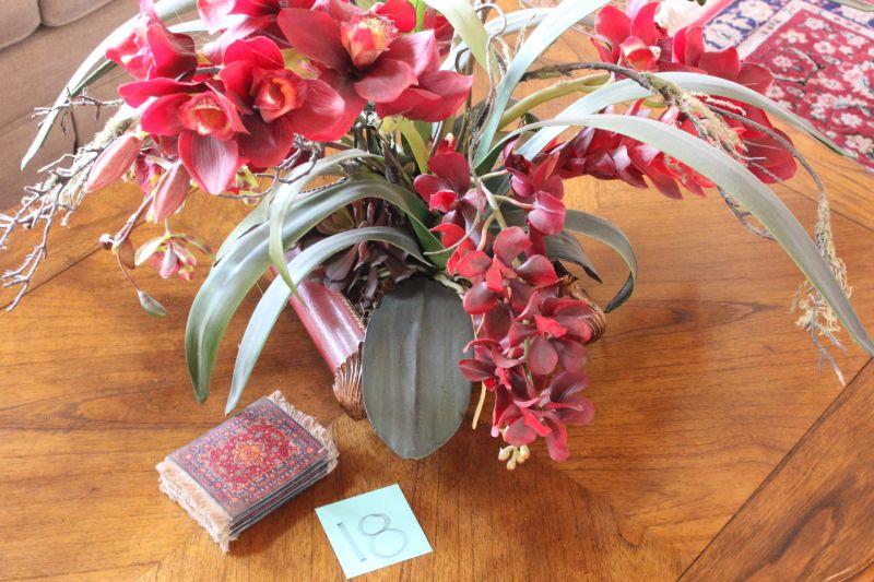 Lot 18 Faux Orchid Floral Arrangement & Rug Coasters