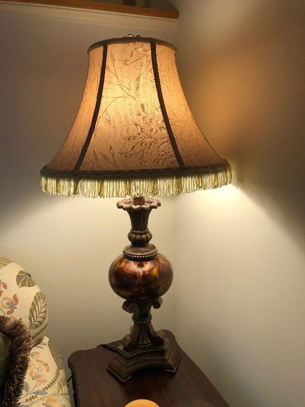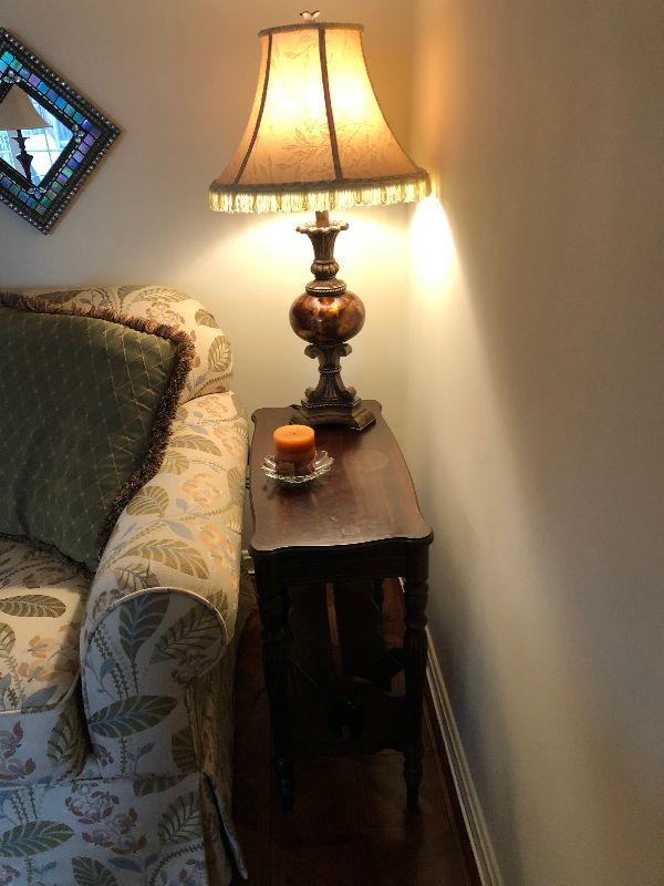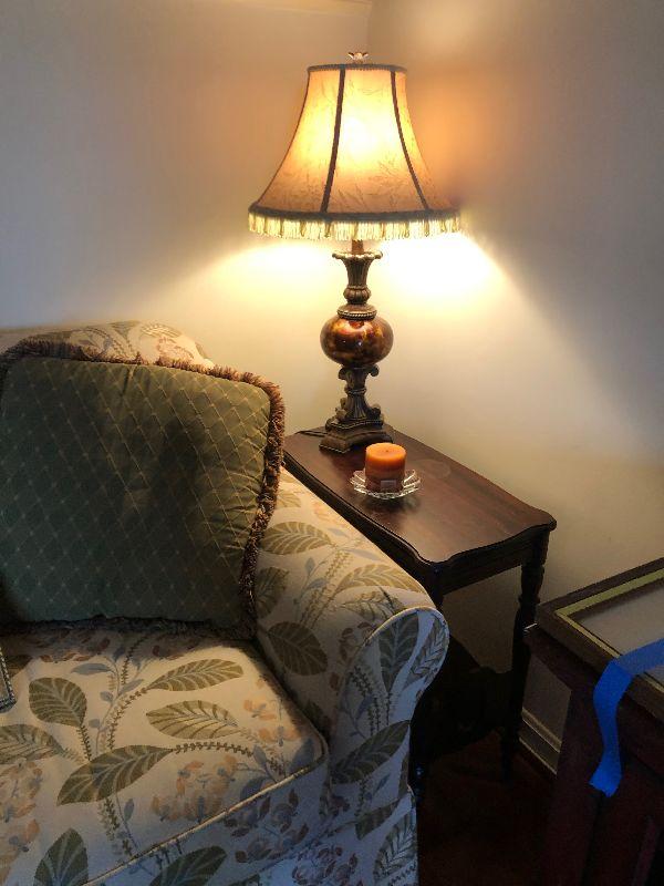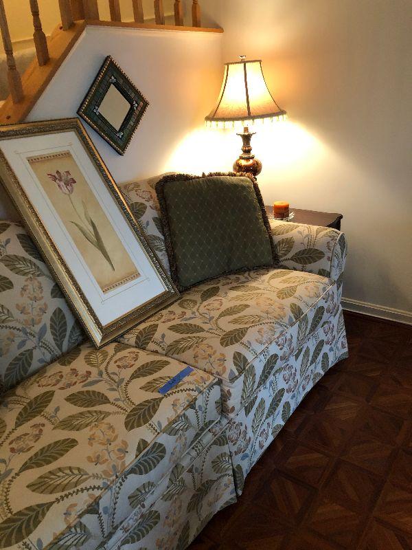 Lot 18 - Floral Sofa, Lamp, End Table and Decor