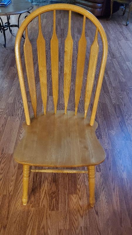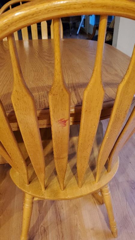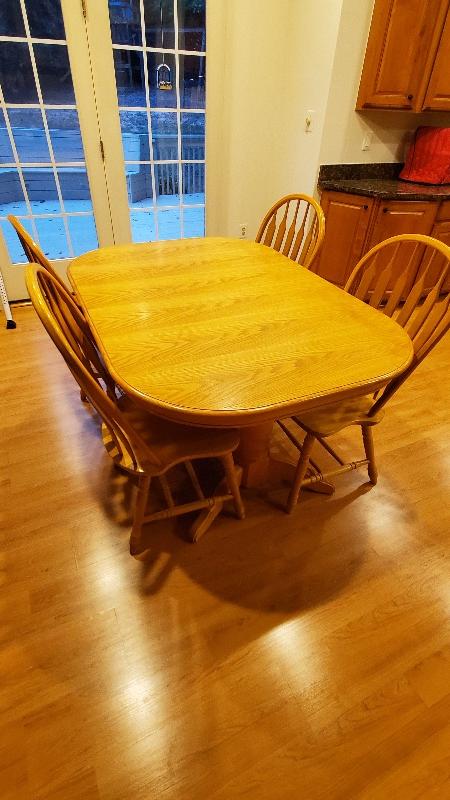 Lot 18 - Solid Oak Table with 2 18" Leaves & 4 Dining Chairs