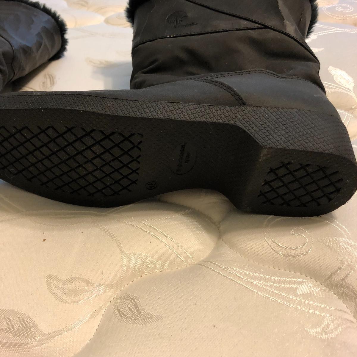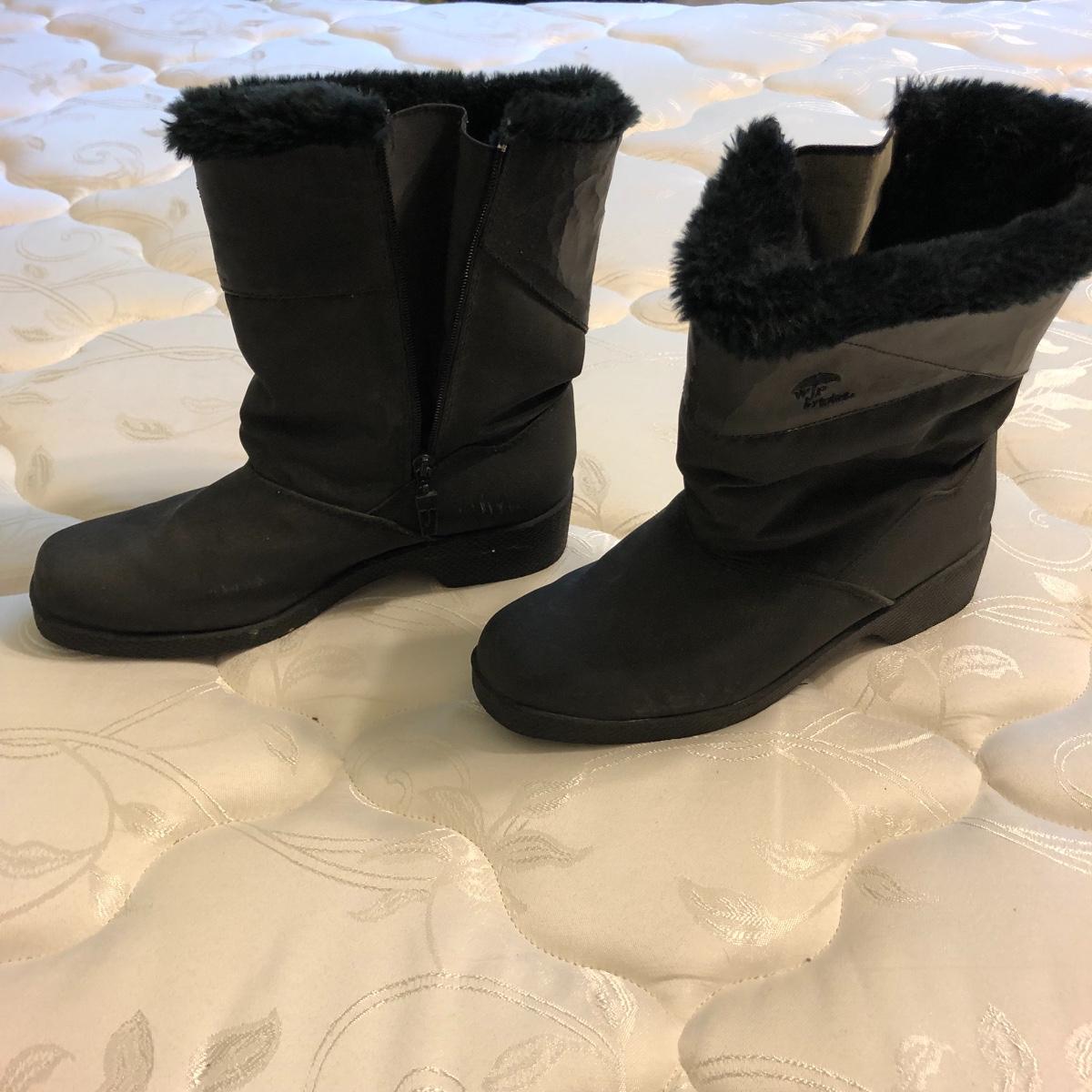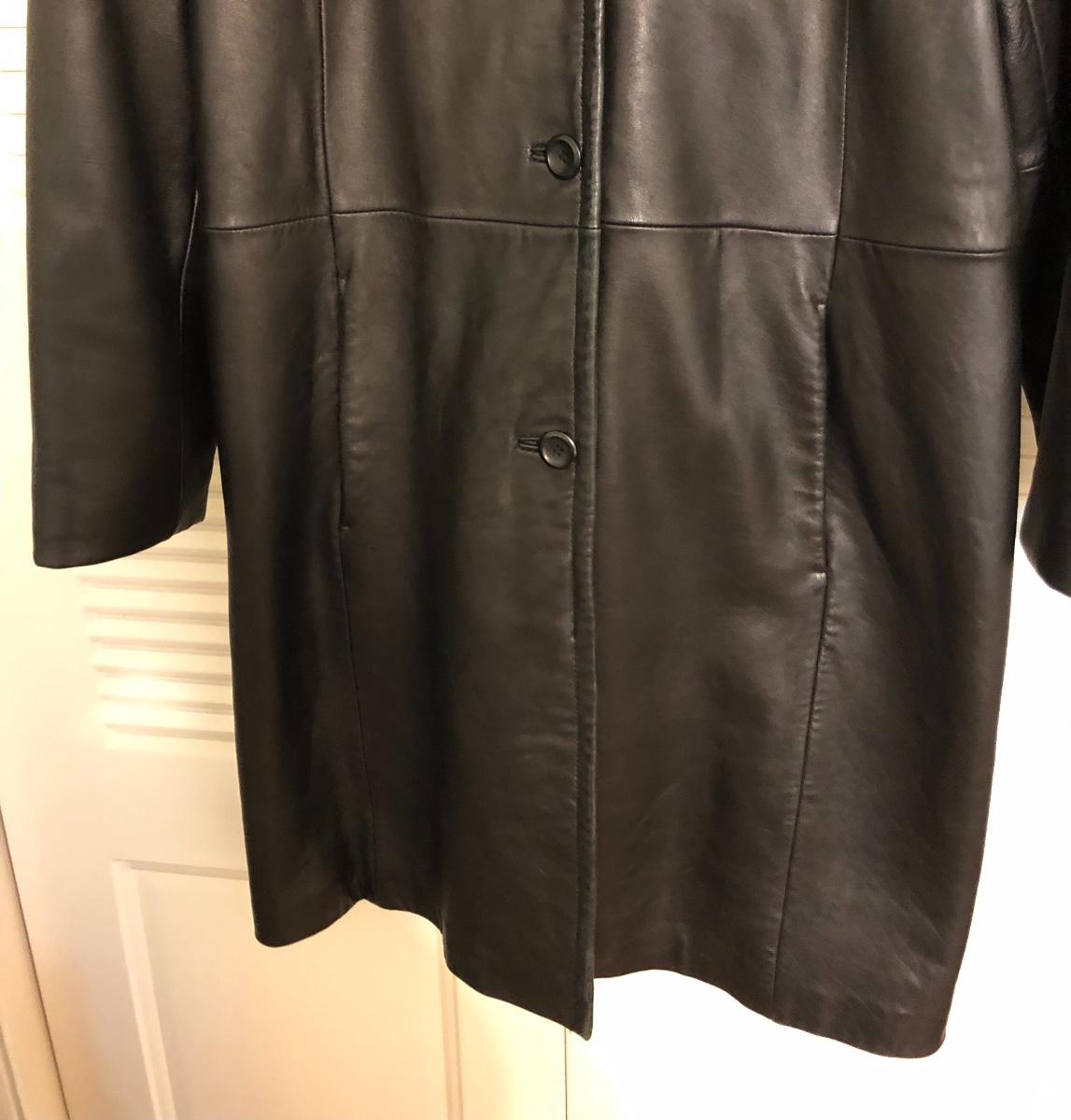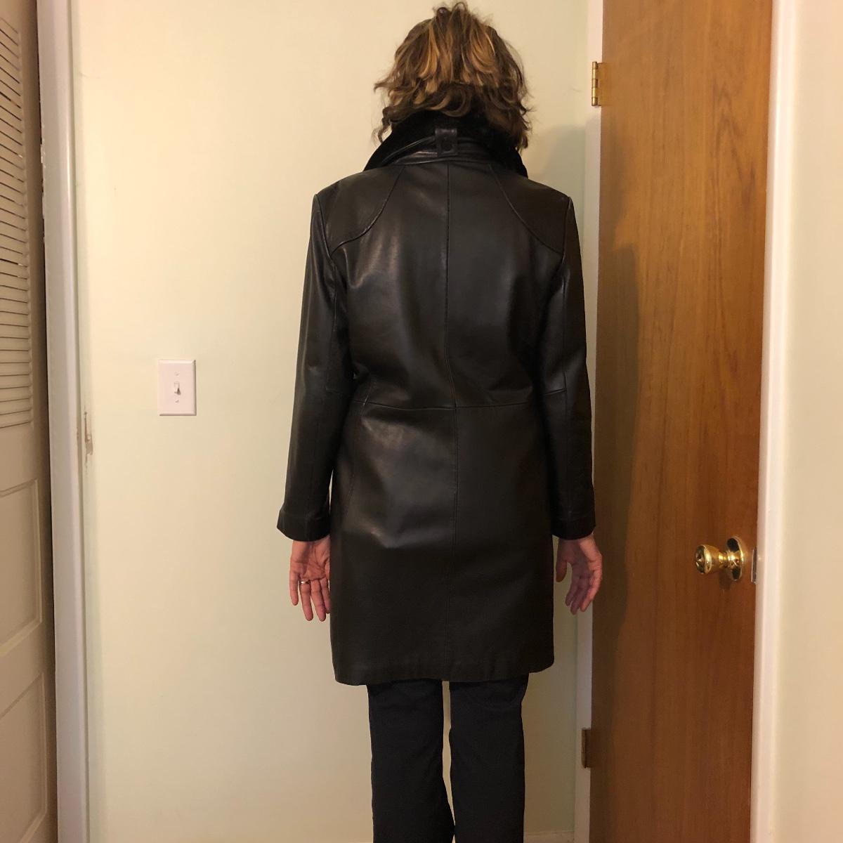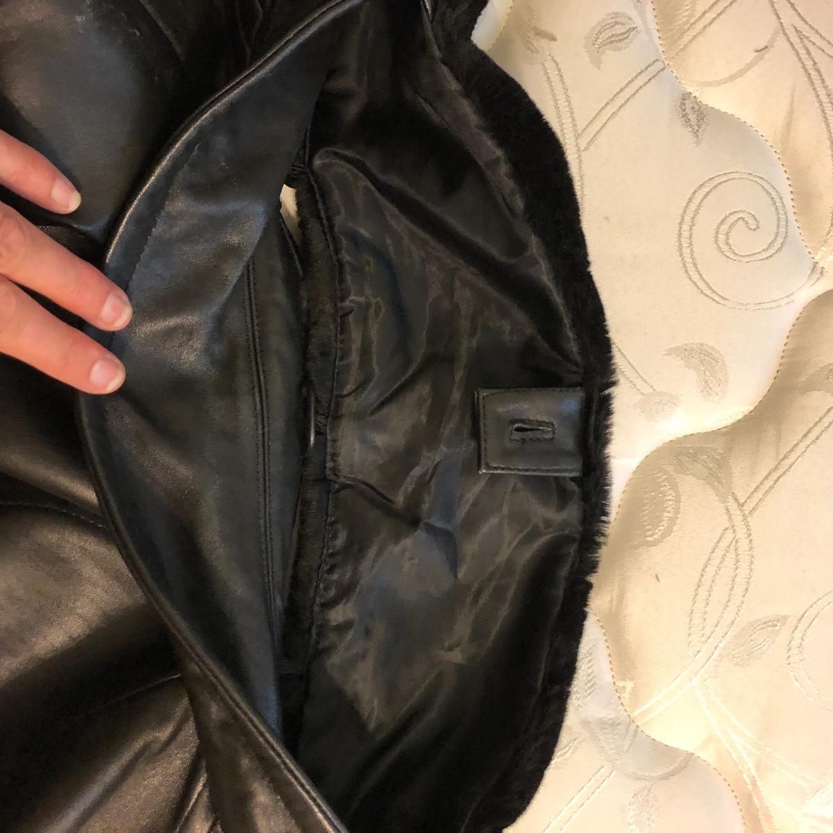 This size large, black Worthington lambskin jacket is soft as butter and extremely lightweight and comfortable. The faux fur collar is detachable. We have paired this jacket with a black scarf and a pair of size 9.5 rain resistant black boots with faux fur lining.