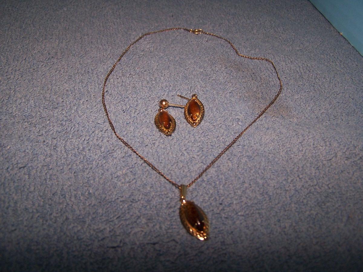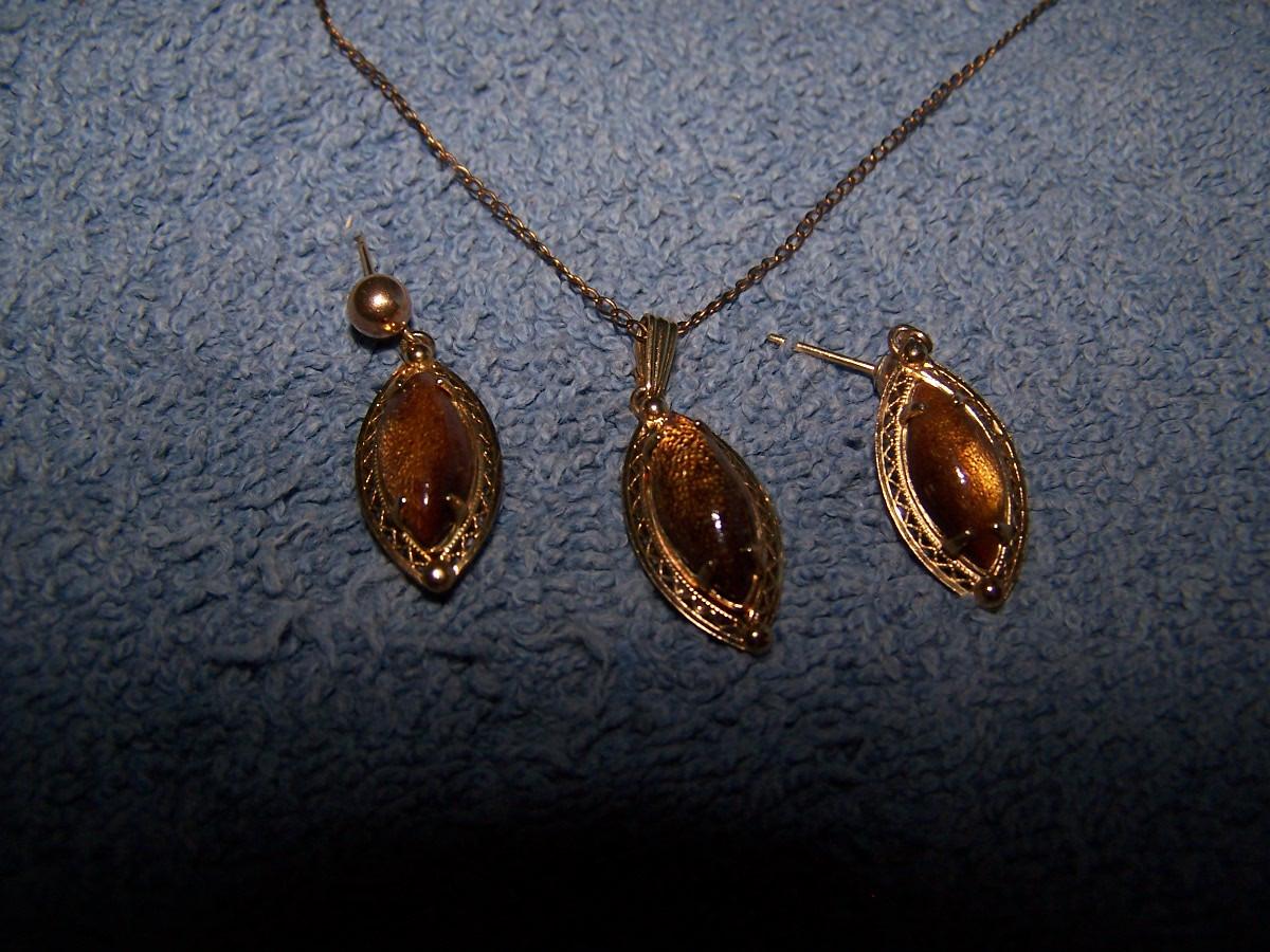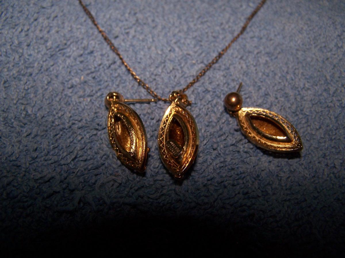 THIS IS A GREAT VINTAGE MCM GOLD FILL/TIGER EYE SORRENTO NECKLACE & EARRINGS SET. NECKLACE/PENDANT IS MARKED. EARRINGS/PENDANT ARE 7/8'' LONG.. CHAIN IS 16'' LONG.. SLIGHT WEAR.