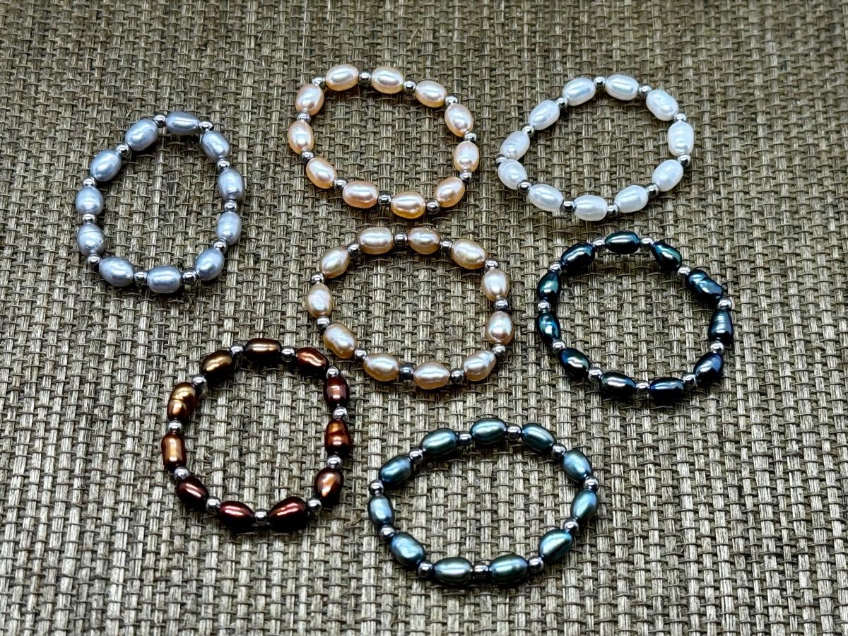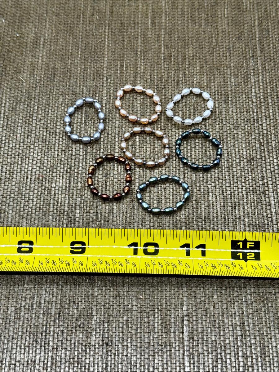LOT 18 - Honora Pearl Stretch Rings Collection, 7 total. Measurements are in the photos.