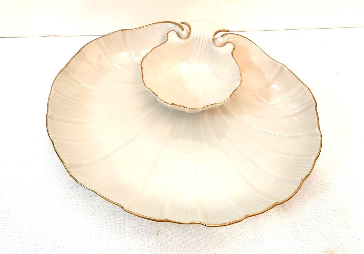 Pretty eggshell colored LENOX porcelain crudite/veggies & dip dish. 12" across - gold trim - good condition.