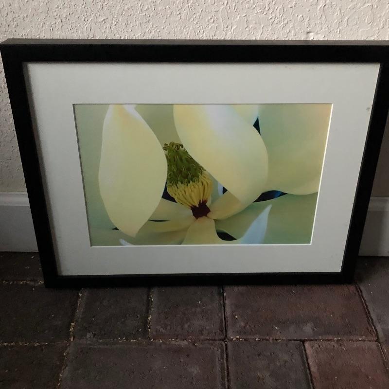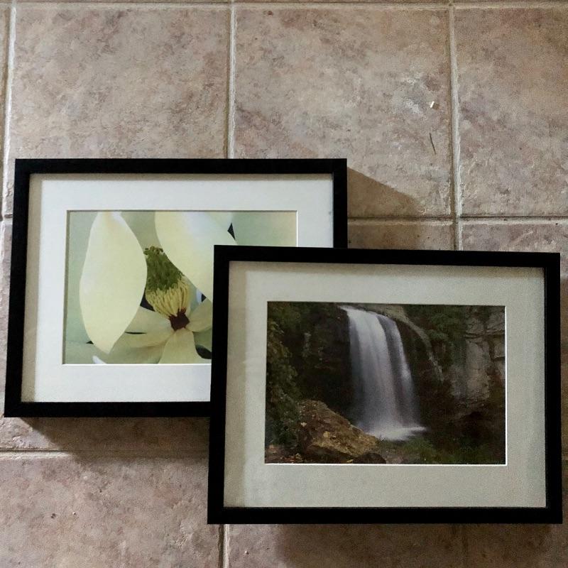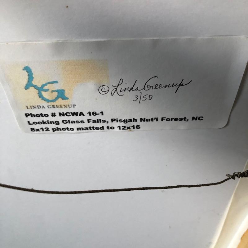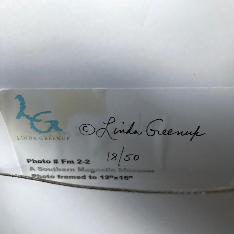 These two beautiful photos are signed and numbered on the back by the local artist Linda Greenup. (studio on Clingman Ave in the River Arts District. Both photos are matted, framed and ready to hang. The flower photo is called " A Southern Magnolia Blossom" and is signed and numbered 18 of 50 and the waterfall is called "Looking Glass Falls, Pisgah Nat'l Forest, NC " and is numbered 3 of 50.