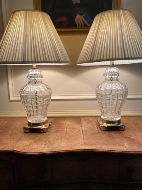 Lot # 18 Pair of Large Heavy Crystal Ginger Jar Style Lamps