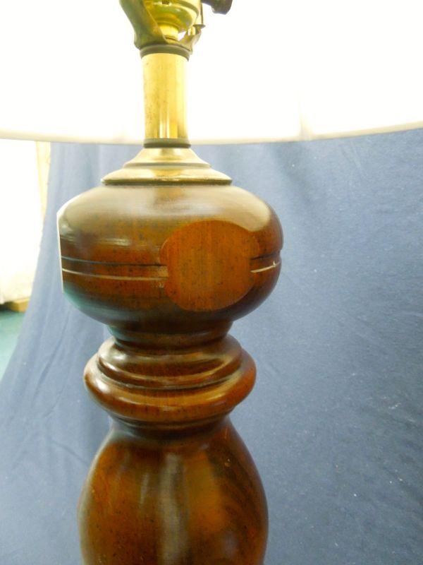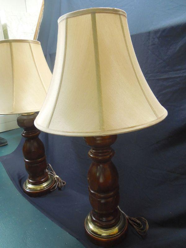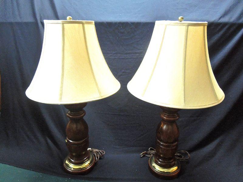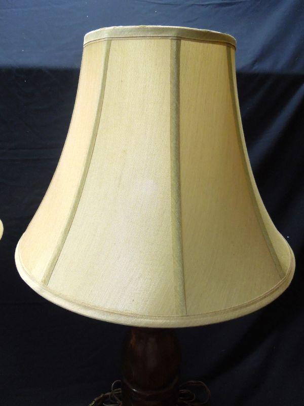 Lot 18: Pair of Wood Based Lamps with Cloth Shades