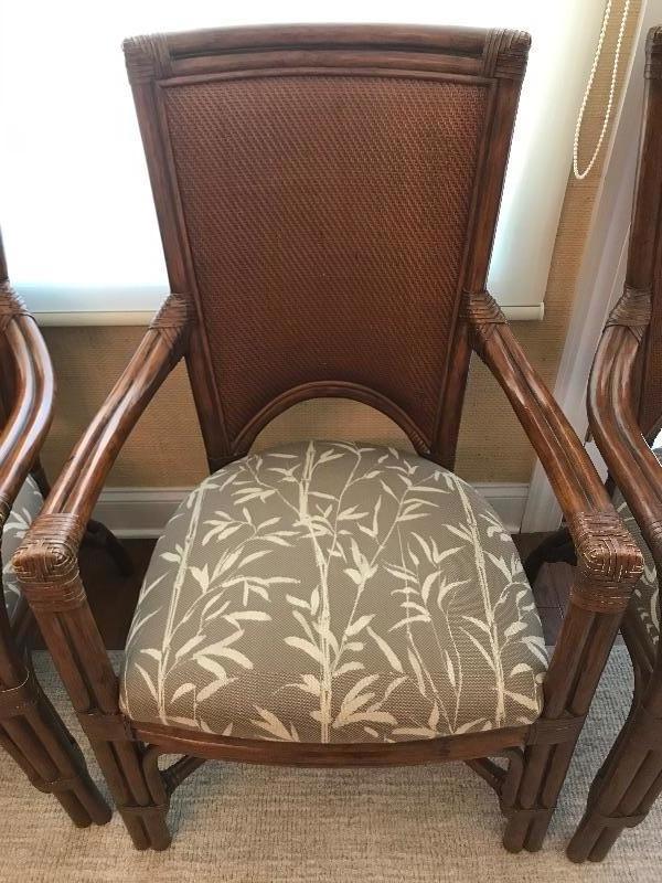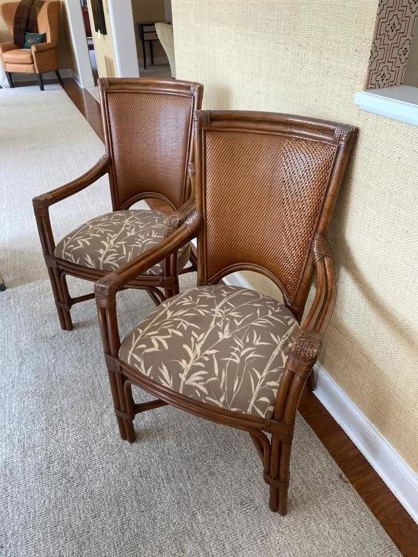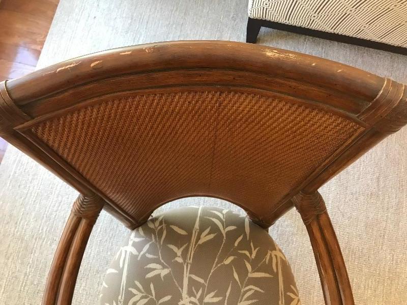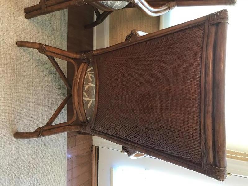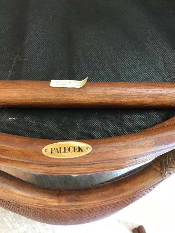 Some slight wear (see photos). Chairs measure 39” tall, 24-1/2” wide, 27” deep and have a seat height of 18”
