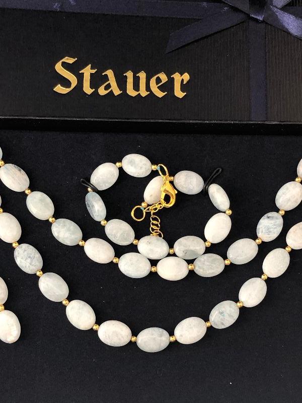 Bracelet and necklace in box Stauer Aquamarine Stones. Shipping is $3.95 anywhere in the US $1 for each additional coin set, currency or jewelry piece.